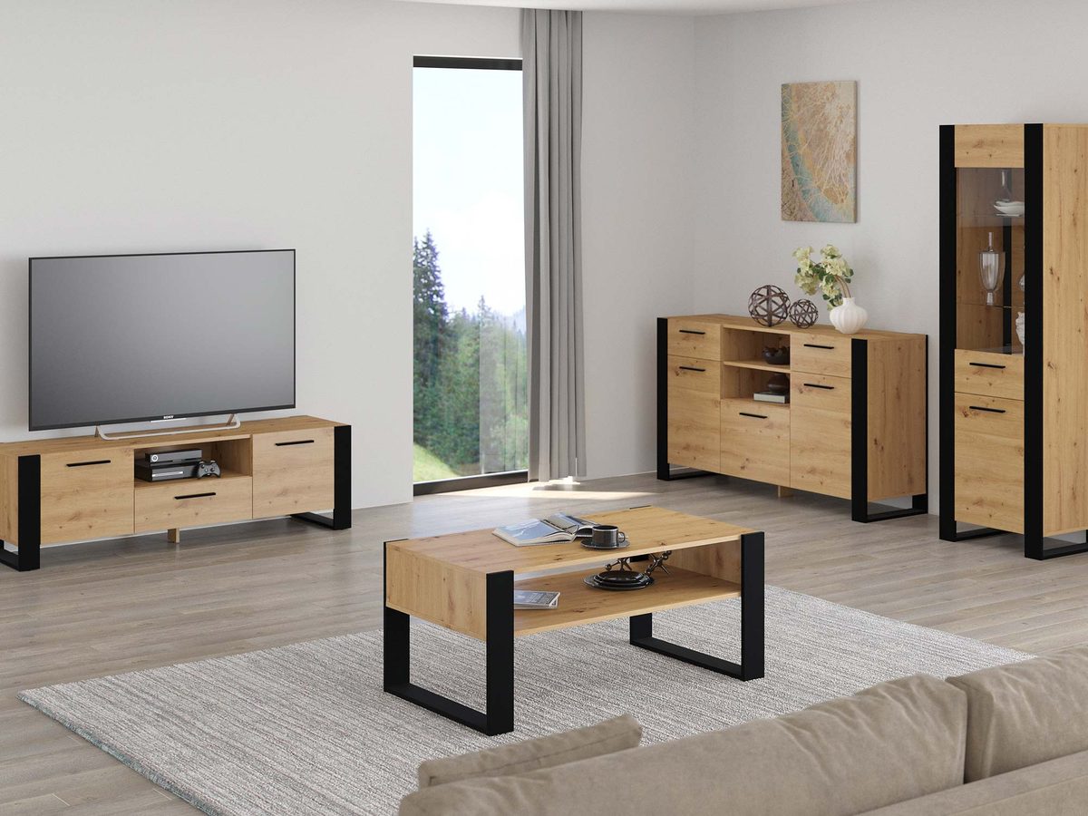 Co najważniejsze prezentowana komoda do pokoju IRFAN zdecydowanie ociepli przestrzeń oraz usprawni organizację pomieszczenia. Ponadto wariant w odcieniu dąb artisan to propozycja dla fanów nieszablonowych wnętrz. Co więcej w połączeniu z kontrastującymi czarnymi wstawkami oraz uchwytami tworzy unikalny oraz elegancki mebel. Dodatkowo dwie szuflady oraz trzy szafki to wystarczająco przestrzeni na klarowną organizację każdego salonu, sypialni, jadalni czy pokoju młodzieżowego. Ponadto dwie otwarte wnęki to miejsce na wyeksponowanie pamiątek rodzinnych czy drobnych dekoracji, co zdecydowanie poprawi całą estetykę aranżacji. Co więcej w połączeniu z innymi meblami z serii IRFAN, można z łatwością stworzyć przytulną oraz funkcjonalną przestrzeń.