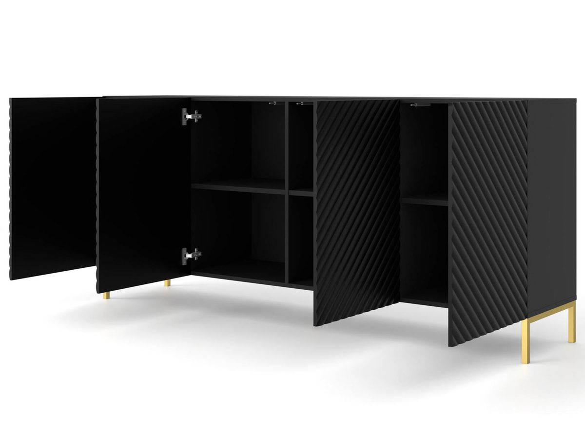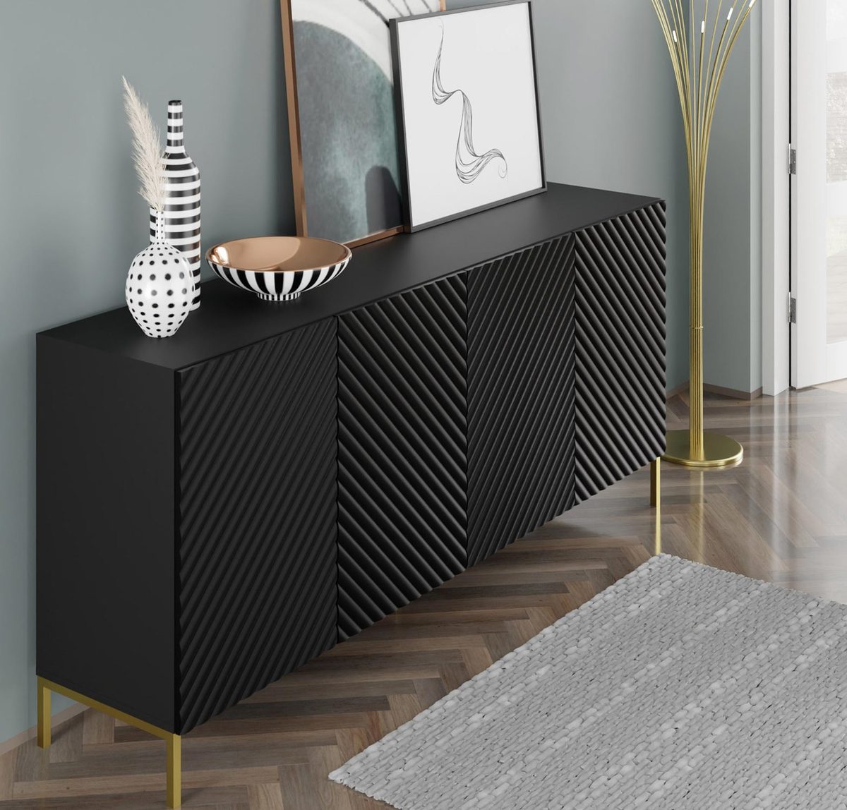 Komoda Loom zachwyca dbałością o detale i precyzyjnym wykonaniem. Frezowane fronty i subtelnie malowane detale nadają jej nowoczesnego wyglądu, który doskonale komponuje się z różnymi stylami wnętrzarskimi. Złote metalowe nogi dodają lekkości i elegancji, sprawiając, że komoda staje się centralnym punktem każdego pomieszczenia.