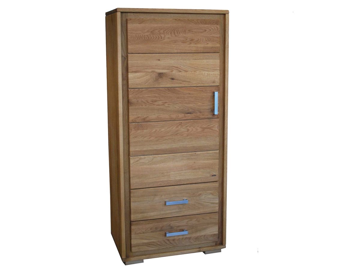 Prezentowana wąska komoda dębowa ALAMOS pozwoli stworzyć niepowtarzalne wnętrze jadalni lub salonu w klasycznym stylu. Co najważniejsze jest to mebel o zachwycającym wyglądzie, a jednocześnie najwyższej jakości wykonania. Komoda słupek dostępna jest zarówno w wersji prawo jak i lewostronnej. Dodatkowo ten masywny i stabilny mebel wykonano z litego drewna dębowego olejowanego, które jest niezwykle trwałe.  Mebel ten pomieści i doskonale zaprezentuje wiele przedmiotów. Ponadto jego wygląd bardzo dobrze wpasuje się zarówno w tradycyjną jak i nowoczesną aranżację wnętrza w Twoim domu. Co więcej naturalny kolor mebla pozwoli Ci stworzyć w dowolnym pomieszczeniu wyjątkowy, przytulny klimat. Poza drzwiczkami mebel ten posiada także 2 dolne szuflady, stanowi idealne rozwiązanie dla osób, które poszukują pojemnego mebla, zaprojektowanego w klasycznym, prostym stylu.