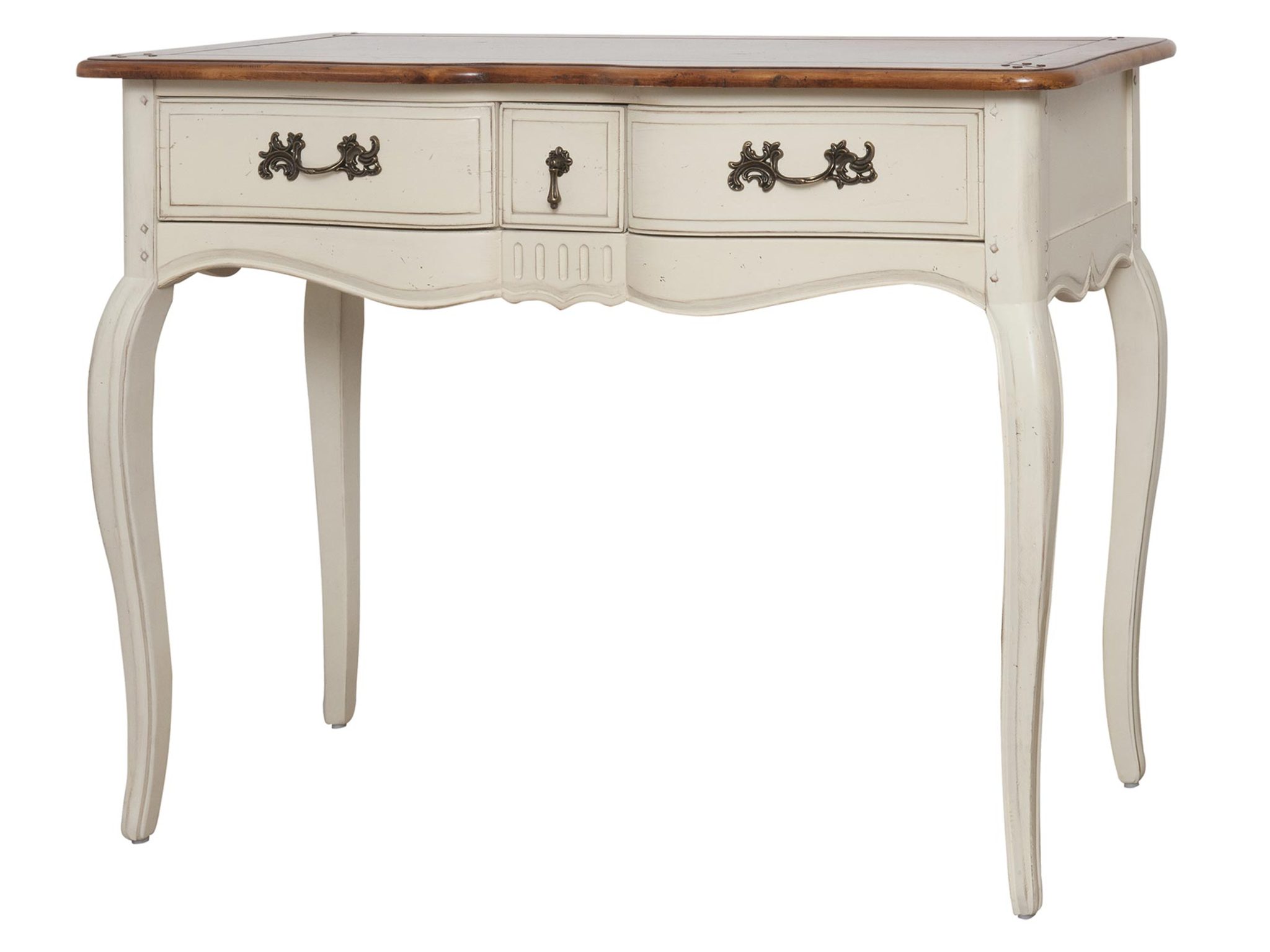 - Przecierany korpus w kolorze kości słoniowej oraz miodowy blat w połysku tworzą doskonały kontrast