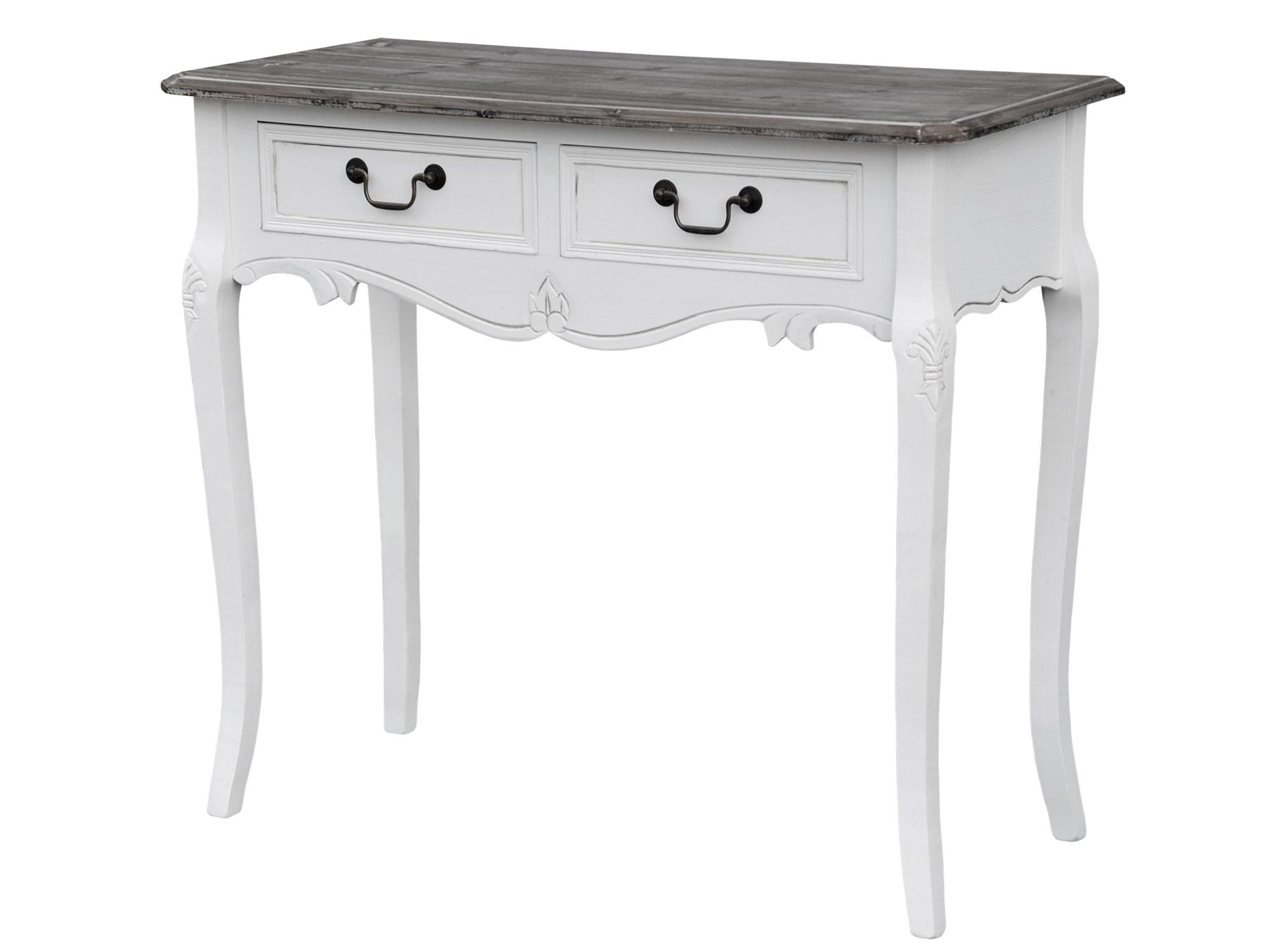 Stylowa Konsola Z Rzeźbieniami W Bieli I Ciemnobrązowym Blatem – Sorrento White