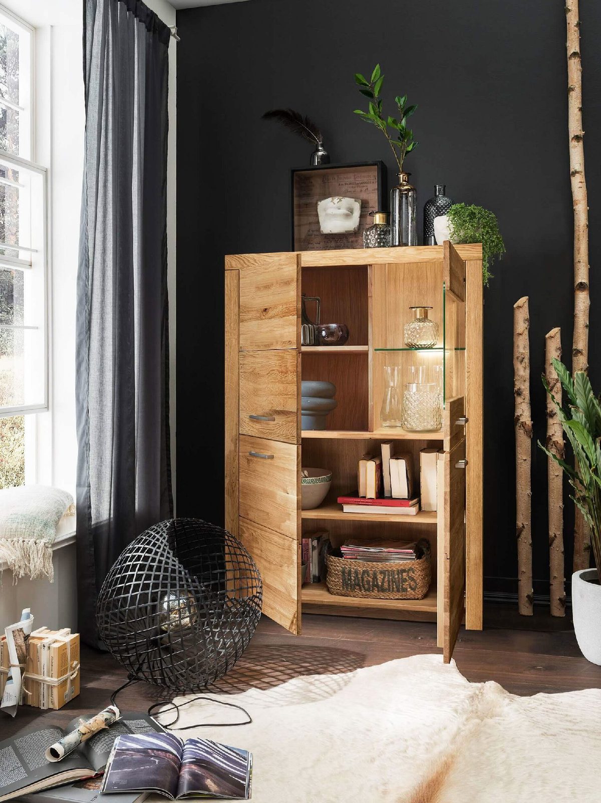 Kredens II Prawy: Piękno Dębu i Wyrafinowane Uchwyty dla Twojego Domu Solis