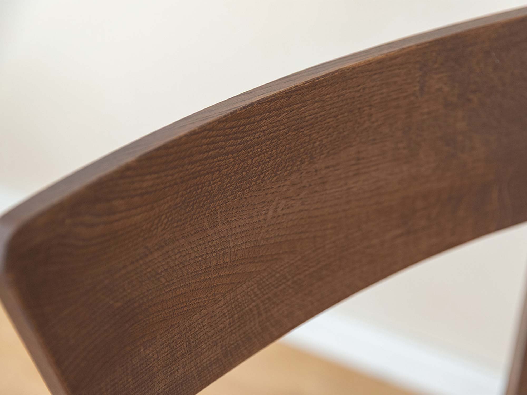 Wykończenie olejowane podkreśla charakter drewna i dodaje mu głębi – to nie tylko zabieg estetyczny, ale też sposób na zabezpieczenie powierzchni przed codziennym użytkowaniem. Dzięki temu krzesło pozostaje piękne przez lata, a jego powierzchnia zachowuje aksamitną gładkość.
