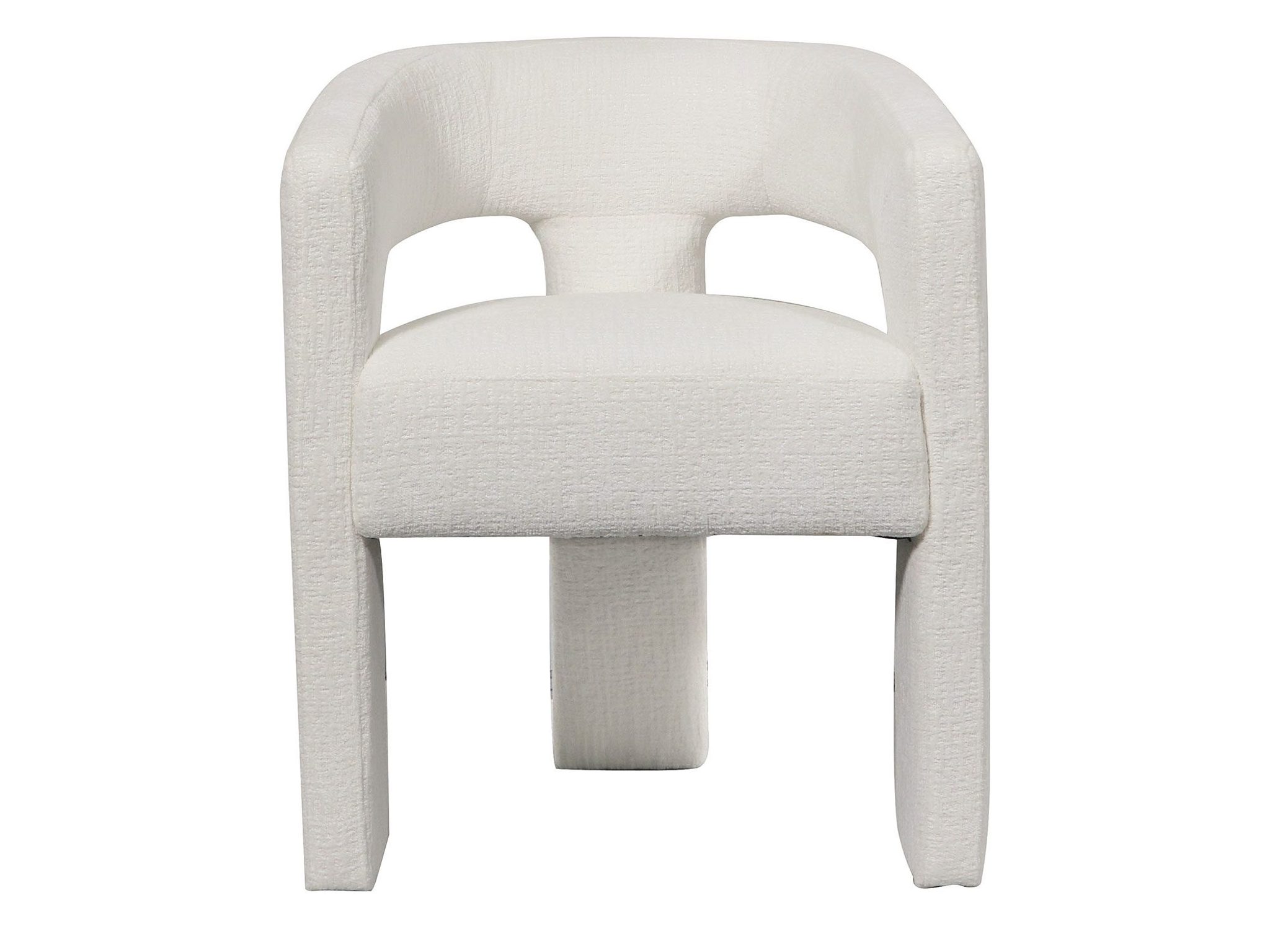 Ekskluzywne białe krzesło tapicerowane, które łączy nowoczesny design z doskonałą jakością wykonania. Luksusowa tkanina szenilowa oraz obłe kształty podkreślają elegancję mebla, czyniąc go idealnym wyborem do każdej jadalni czy salonu. Stylowy wygląd i wygoda użytkowania sprawiają, że jest to doskonała inwestycja na lata.