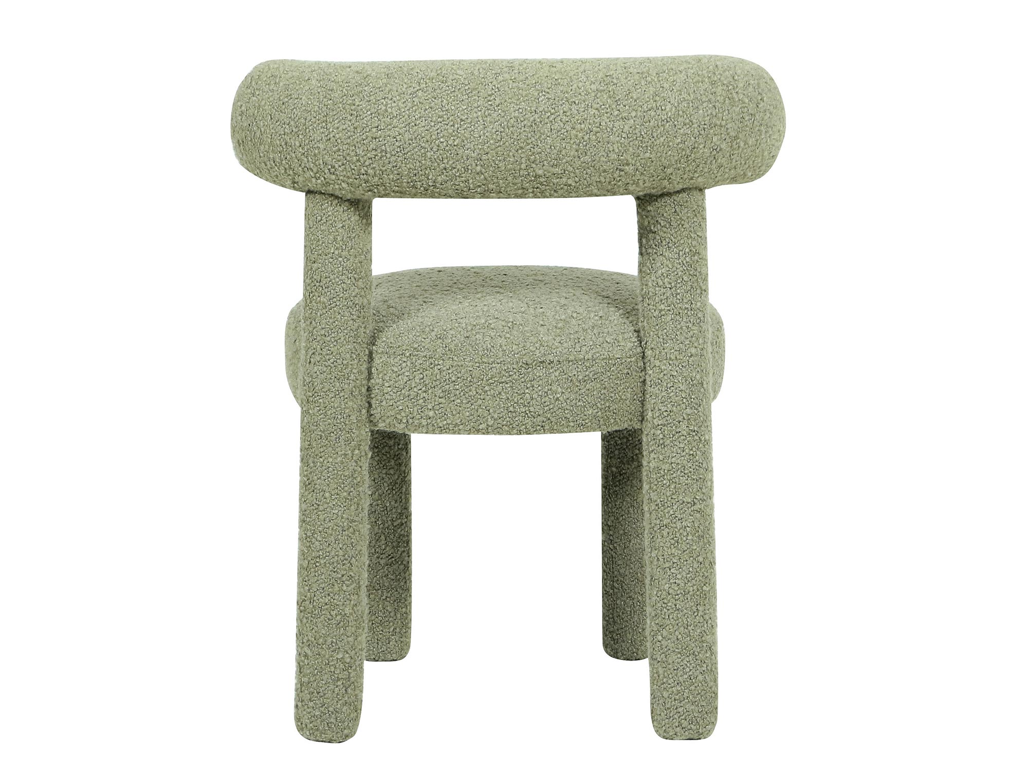 Nowoczesne krzesło w eleganckim kolorze szałwiowej zieleni, które doskonale łączy współczesny styl z wygodą i funkcjonalnością. Jego obłe kształty, w pełni pokryte materiałem, sprawiają, że świetnie wpisuje się w estetykę nowoczesnych wnętrz, oferując zarazem komfort i trwałość.