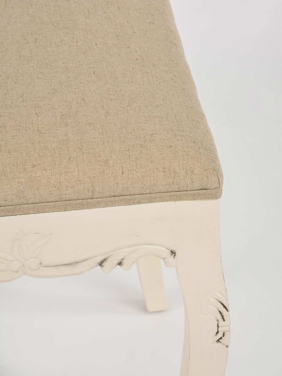 Siedzisko tapicerowane Sorrento to doskonały wybór dla osób szukających eleganckiego, funkcjonalnego mebla. Dzięki subtelnemu stylowi prowansalskiemu, kremowej ramie i beżowej tapicerce, doskonale pasuje do wnętrz w różnych stylach. Wykonane z drewna paulowni, jest solidne, a jednocześnie lekkie. To elegancki i komfortowy mebel, który z pewnością wzbogaci Twoje wnętrze. Kup teraz siedzisko Sorrento i ciesz się wyjątkowym komfortem oraz stylem w swoim domu!