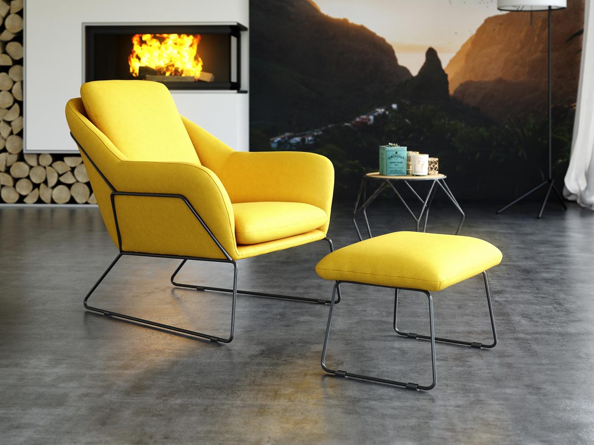 Fotel z podnóżkiem żółty NANAMI