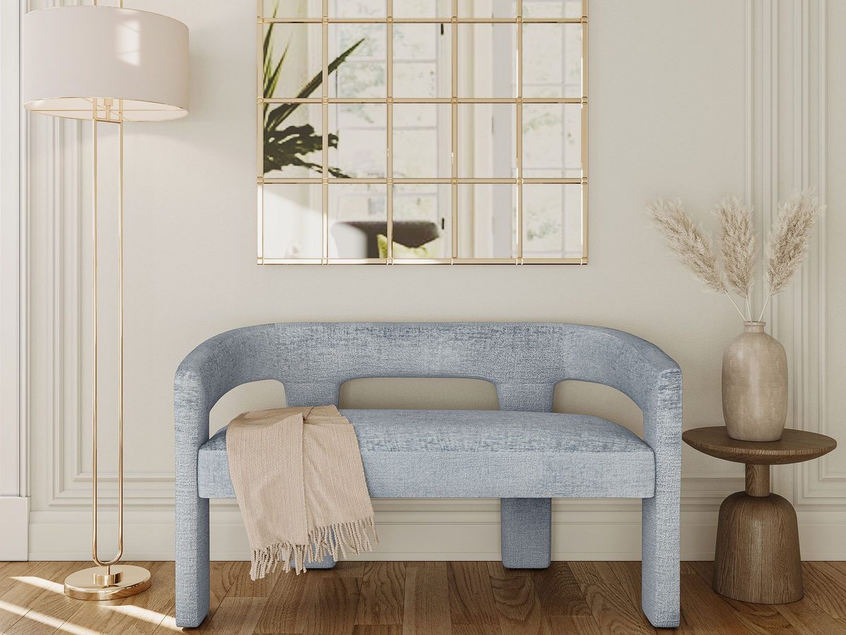 Ławka Tapicerowana w Jasnoniebieskim Kolorze z Tkaniną Szenilową – Edinburgh