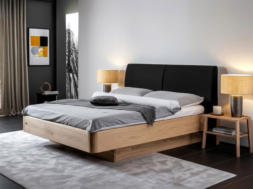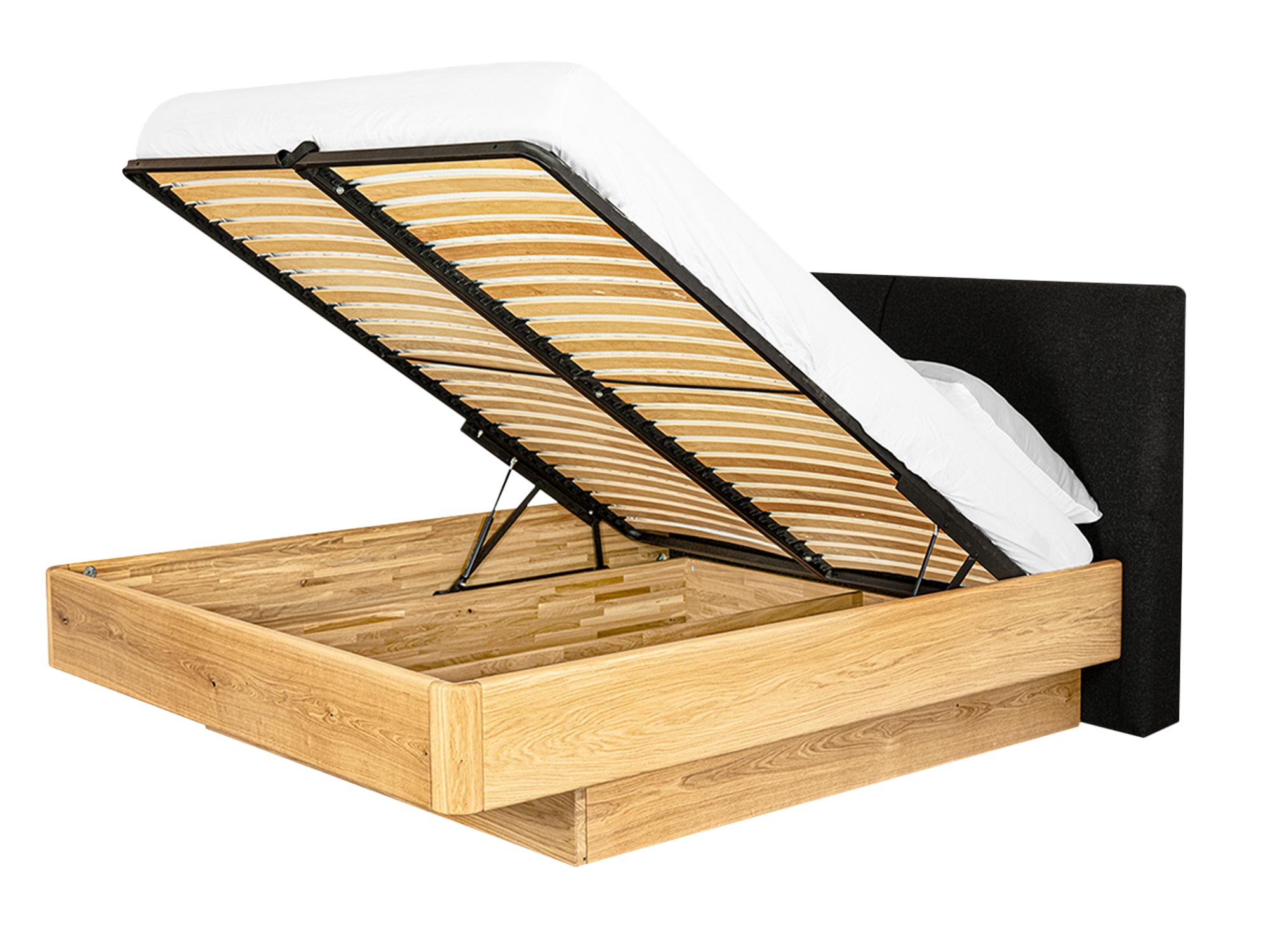łóżko dębowe z podnoszonym stelażem – design, materiały i detale