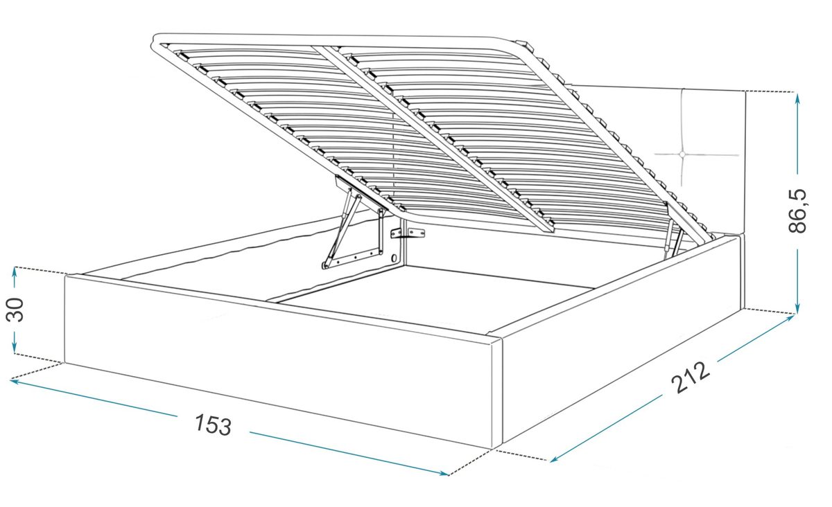 Zaopatrzony w ramki podpierające materac, posiada system podnoszenia w formie dwóch siłowników gazowych a także brzozowe listwy sprężynujące typu flex umieszczone w plastikowych kieszonkach. Rama stelaża skonstruowana jest ze stali.
