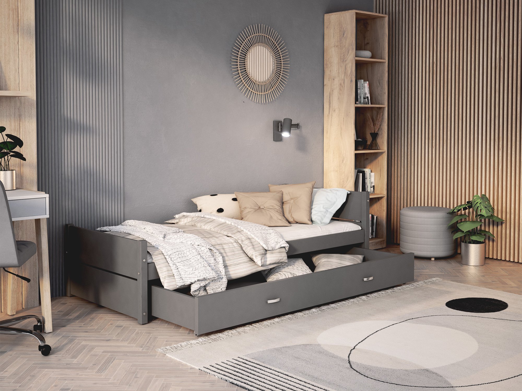 - Kompletny zestaw – łóżko, szuflada i materac BERGAMO w jednym pakiecie.