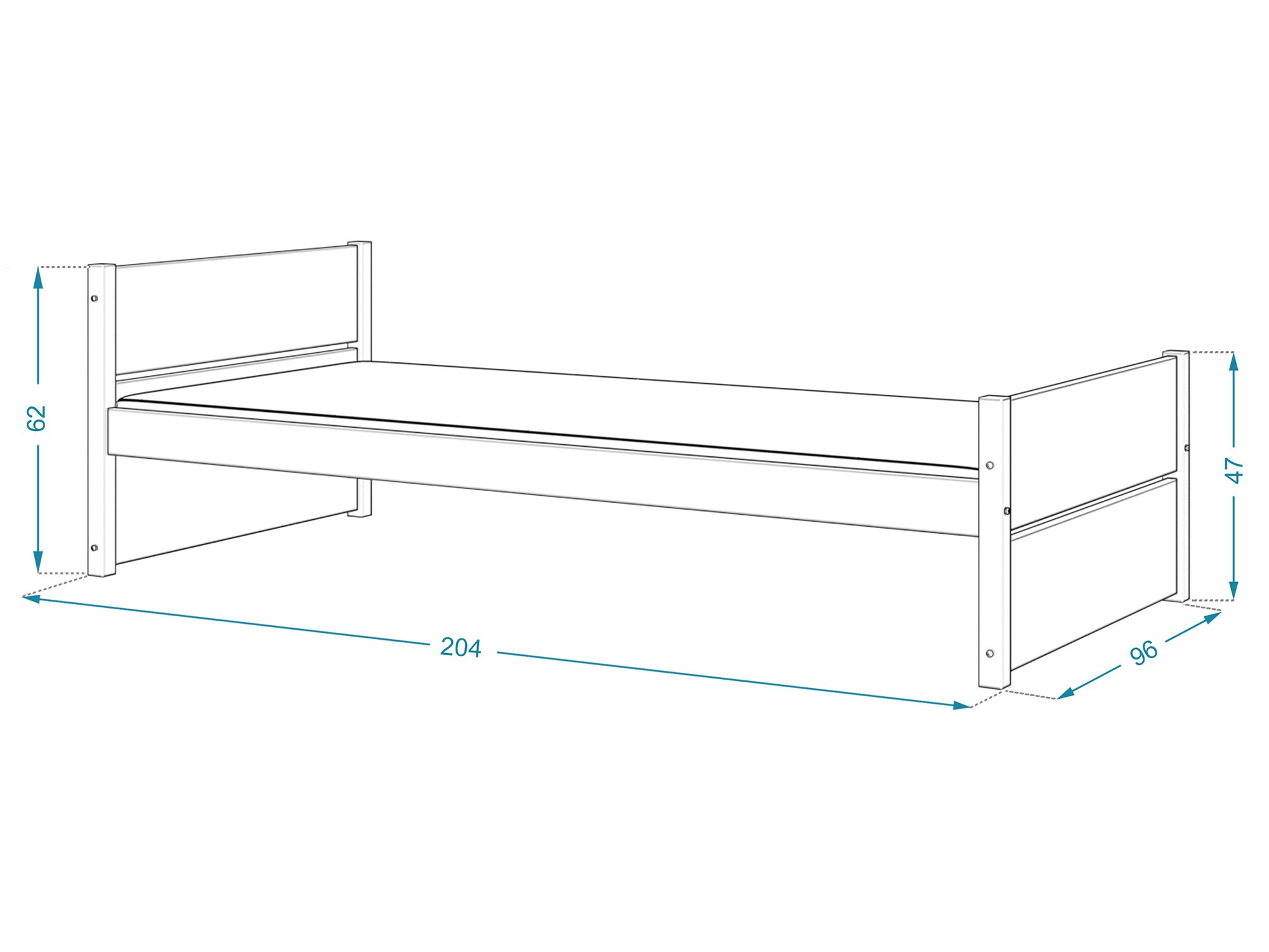 - Głębokość łóżka: 96 cm