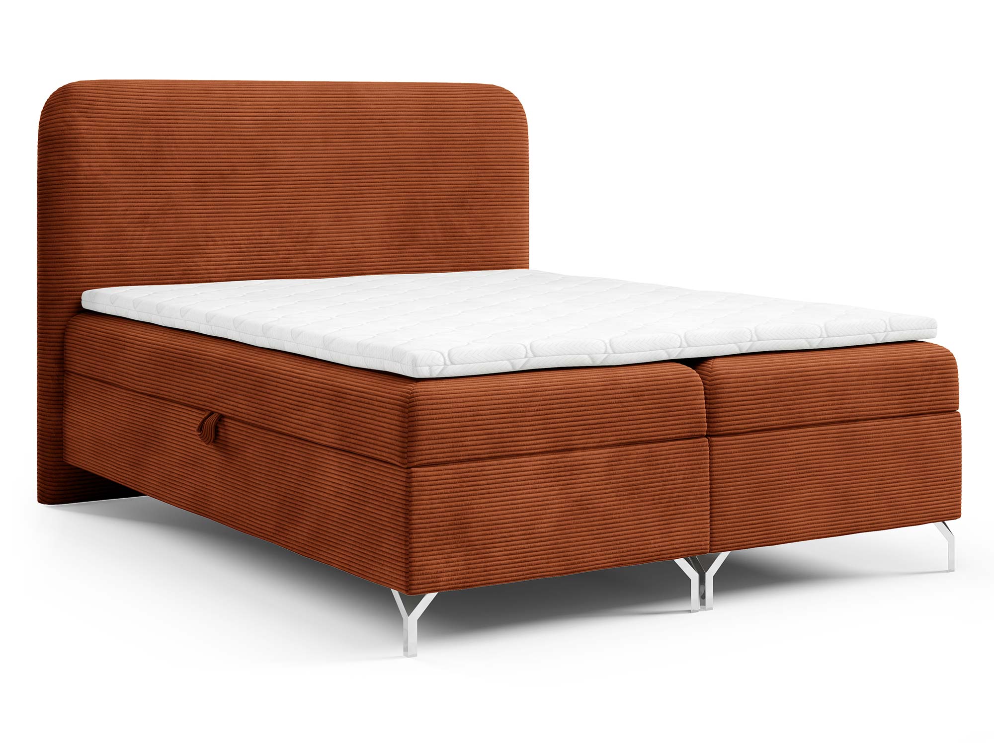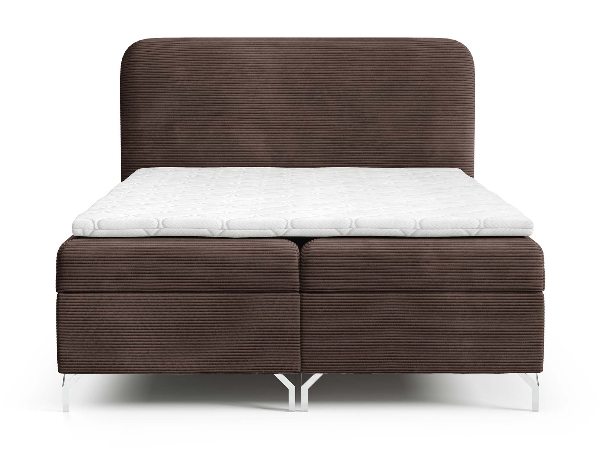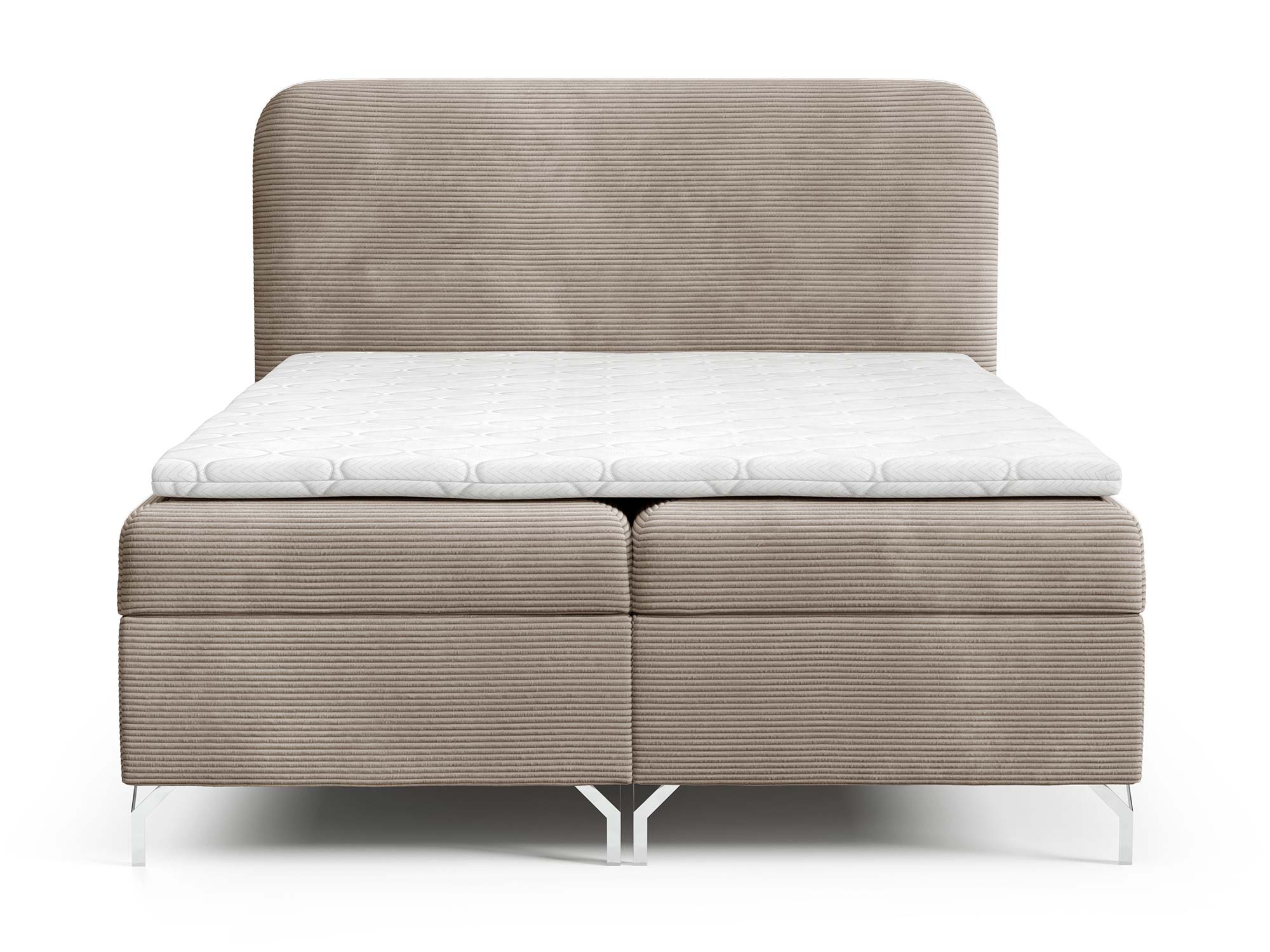W łóżku zastosowano materac ze sprężyn bonellowych, który od lat cieszy się niesłabnącą popularnością. To rozwiązanie gwarantuje równomierne rozłożenie ciężaru ciała i sprężystość, dzięki czemu każda noc staje się prawdziwym wypoczynkiem. Dodatkowo zestaw wyposażony został w materac nawierzchniowy (topper) wykonany z pianki T-25 o wysokości 4 cm, który poprawia komfort spania i wyrównuje powierzchnię materaca.