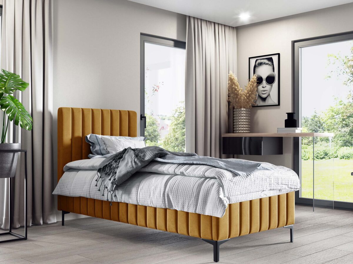 Konstrukcja łóżka została stworzona z myślą o trwałości i komforcie użytkowania. Metalowy stelaż zapewnia stabilność i wytrzymałość, natomiast siłowniki gazowe umożliwiają łatwe podnoszenie i opuszczanie pojemnika na pościel. Dzięki temu, zyskujesz nie tylko stylowy mebel, ale także praktyczne miejsce do przechowywania kołder, poduszek czy innych tekstyliów.