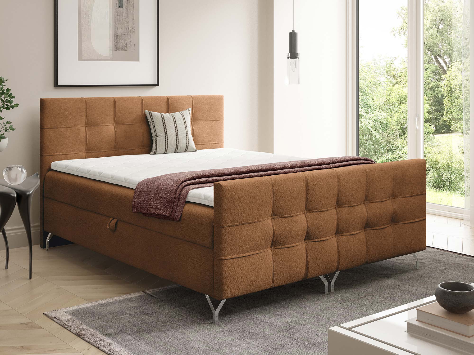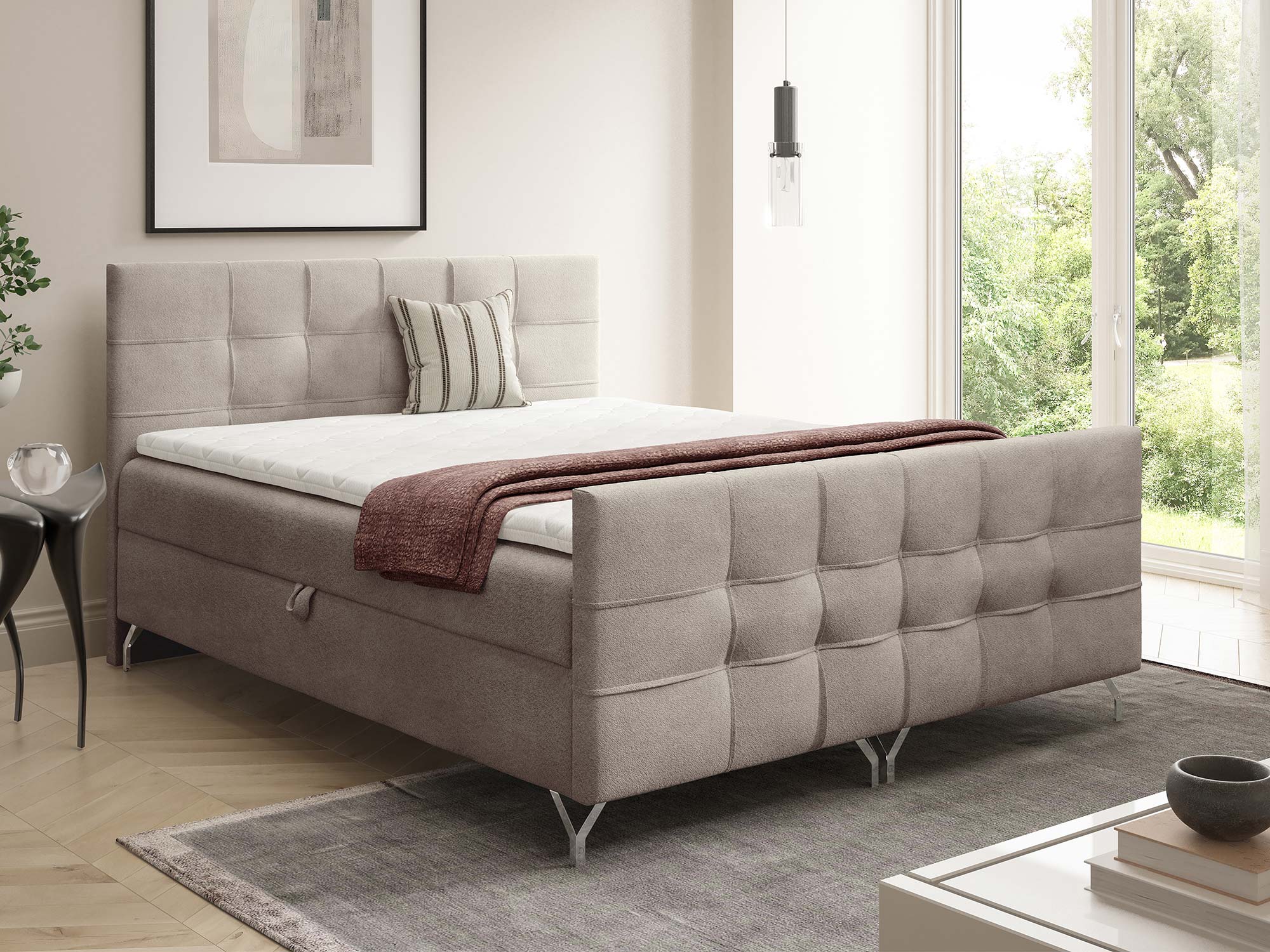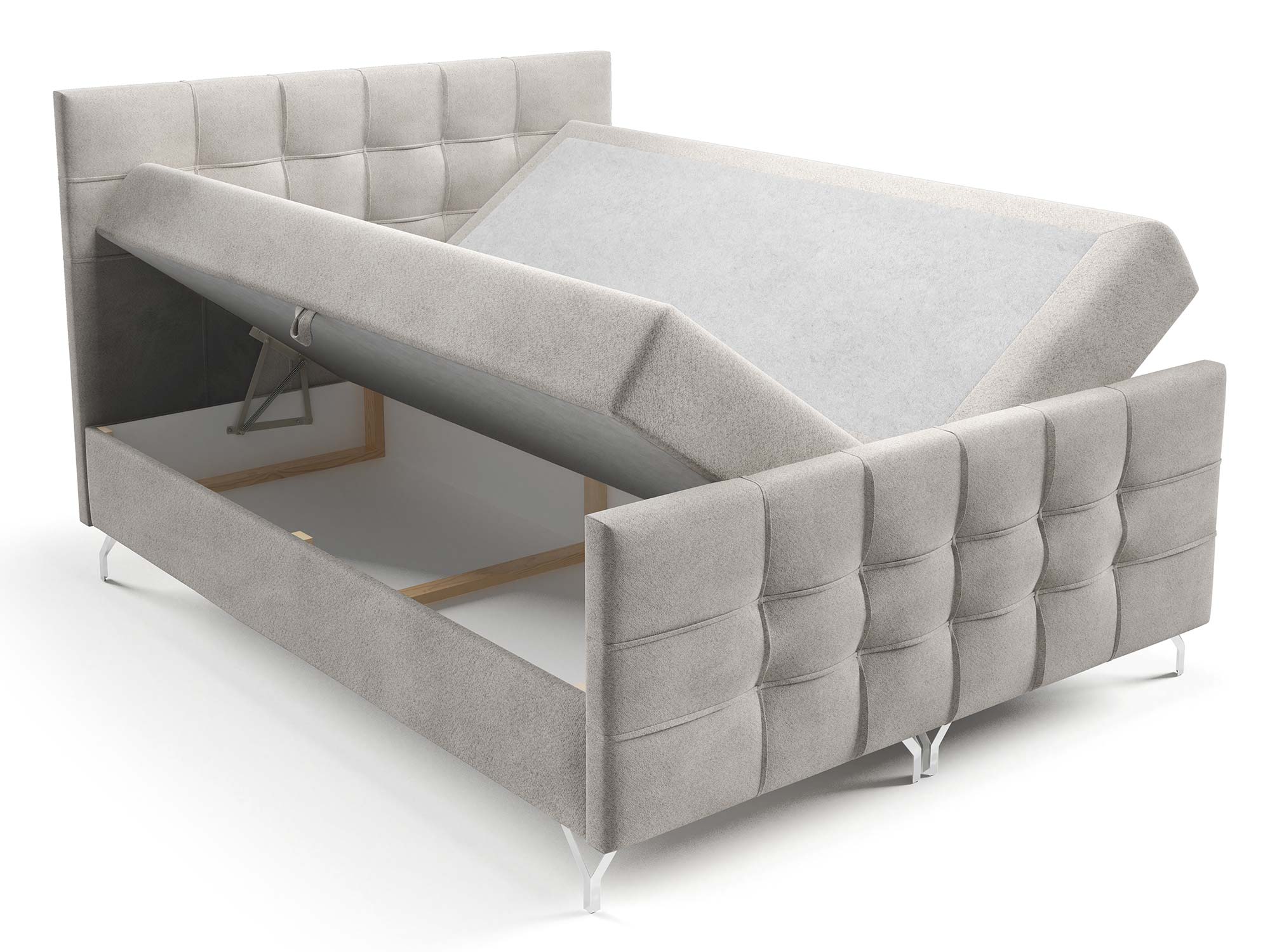 Model Sally 7 lux to połączenie wysokiej jakości wykonania z wyjątkową estetyką. Metalowe srebrne nóżki dodają mu nowoczesnego charakteru, a dwa praktyczne pojemniki na pościel czynią go niezastąpionym w codziennym użytkowaniu. Jeśli marzysz o meblu, który podkreśli charakter Twojej sypialni i zapewni komfort snu na najwyższym poziomie – to propozycja dla Ciebie.
