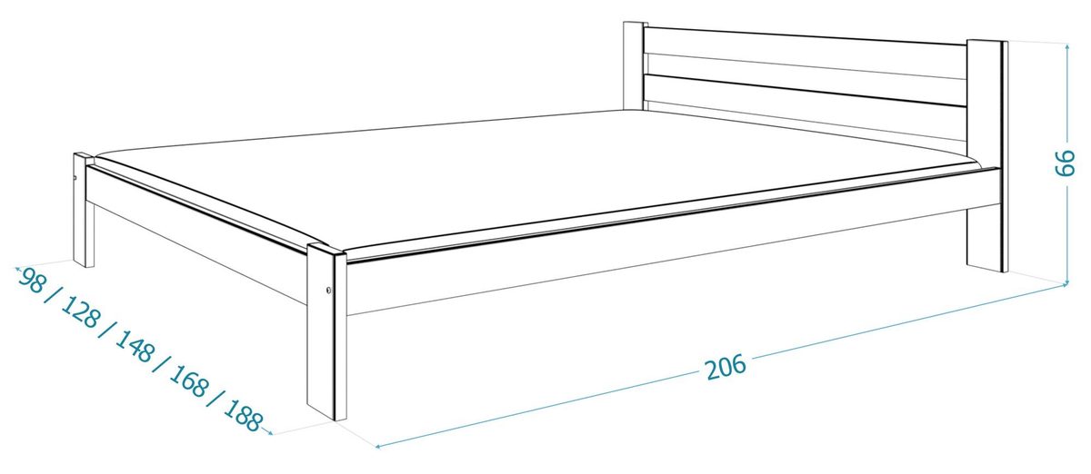 Przede wszystkim łóżko to posiada wytrzymała i solidna konstrukcję. Ponadto mebel wykonano z wysokiej jakości drewna sosnowego, gwarantującego najwyższej klasy komfort. Dodatkowo produkt wyposażono w drewniany stelaż. Meble ten dostępny w wielu wariantach kolorystycznych.