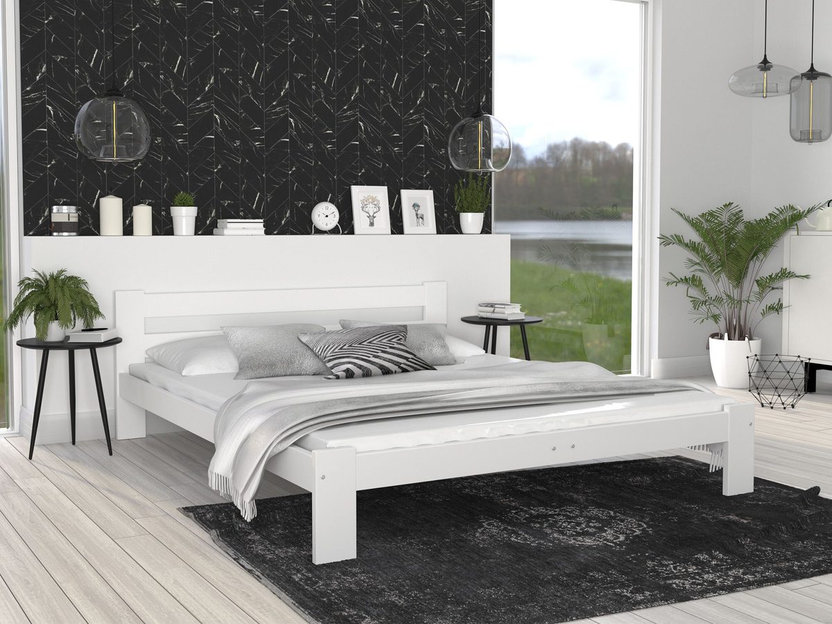 Białe łóżko drewniane ze stelażem i materacem aranżacja biel RELAX