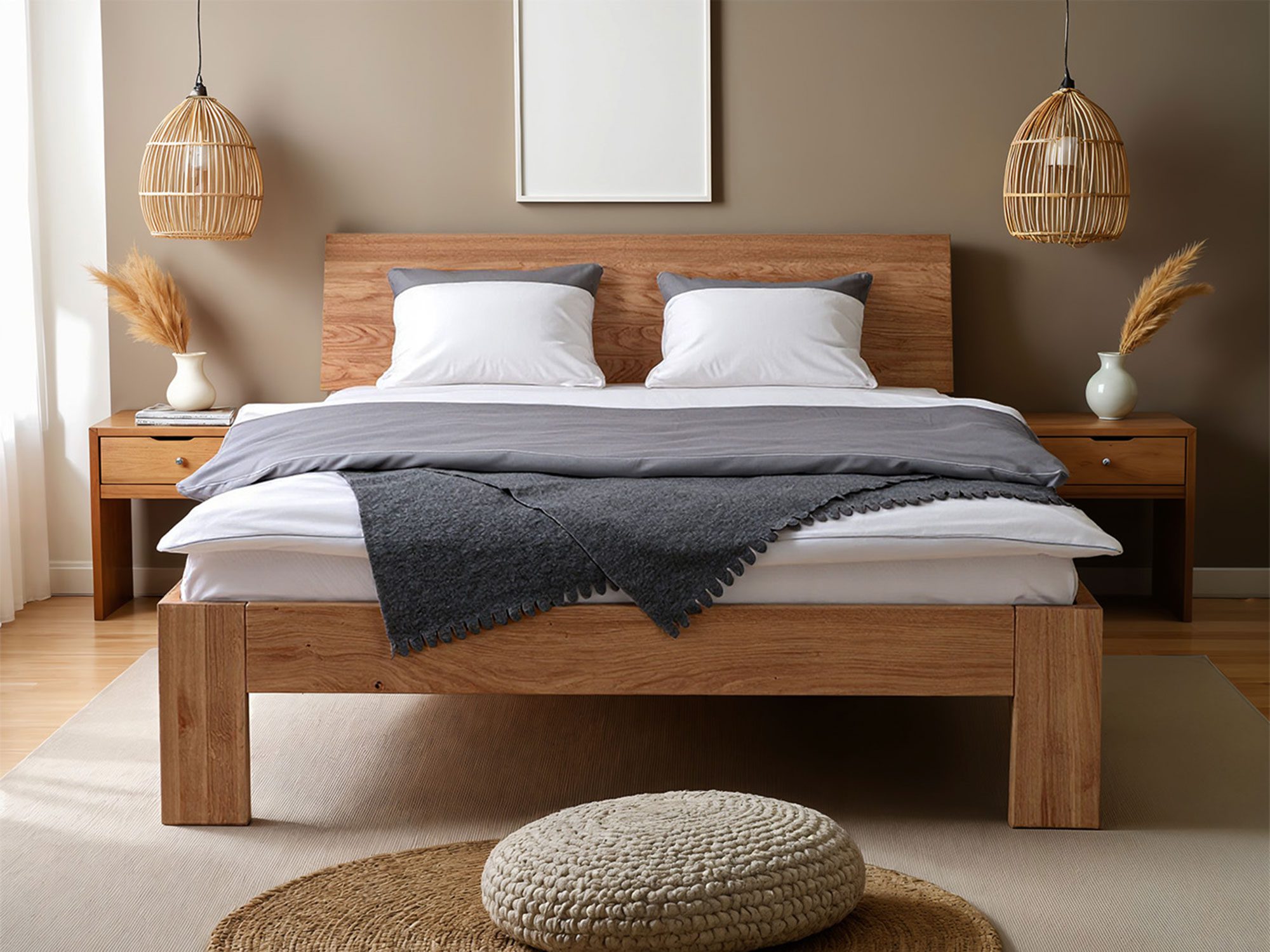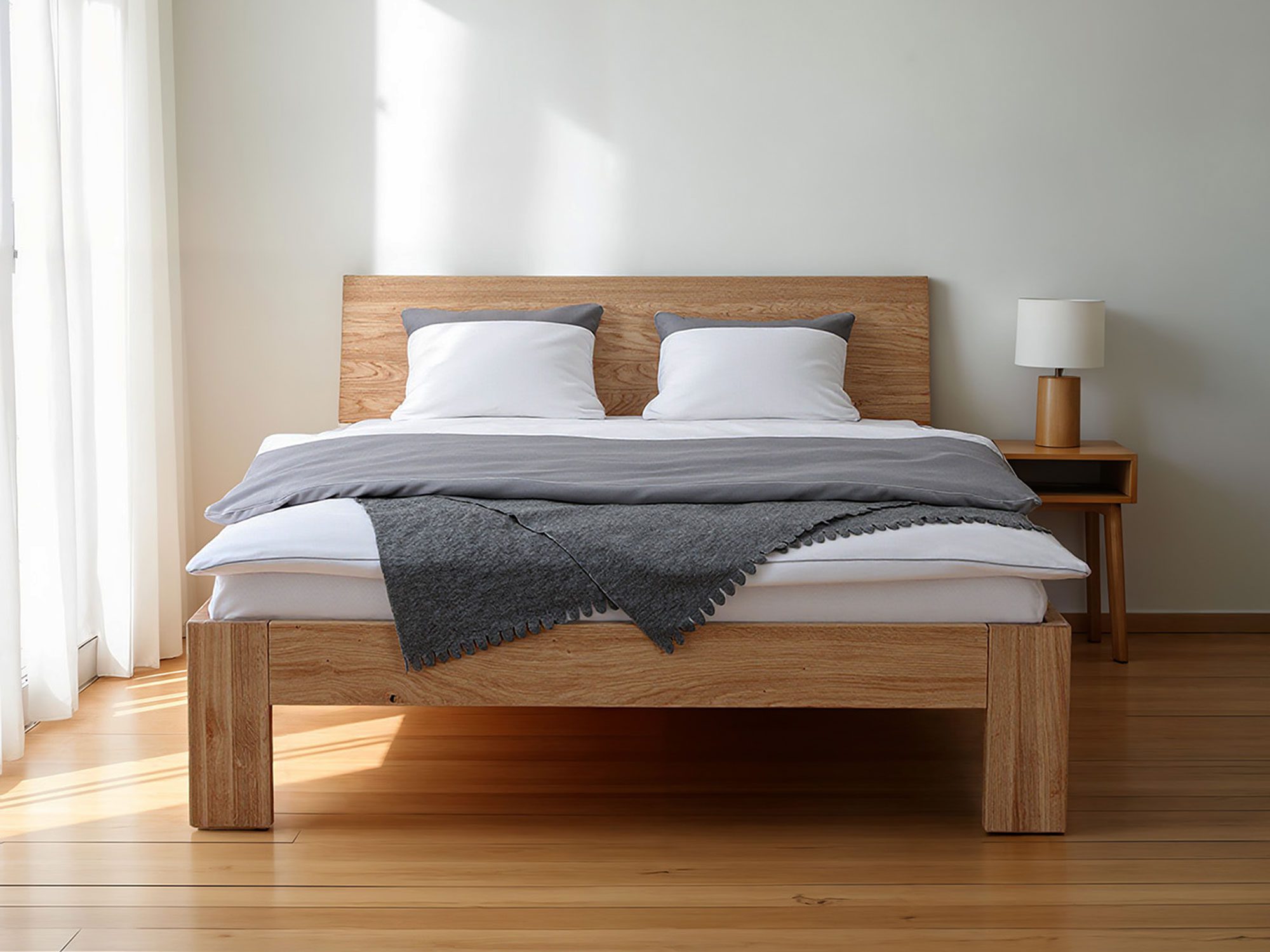 Cateresia A to esencja nowoczesnej klasyki: 100% litego dębu, olejowosk wydobywający piękno słojów i ponadczasowa forma z lekkim, ergonomicznym pochyleniem zagłówka. Ciepły rysunek drewna i spokój, jaki wprowadza do sypialni. Solidna rama, dopracowane łączenia, trwałe wykończenie.