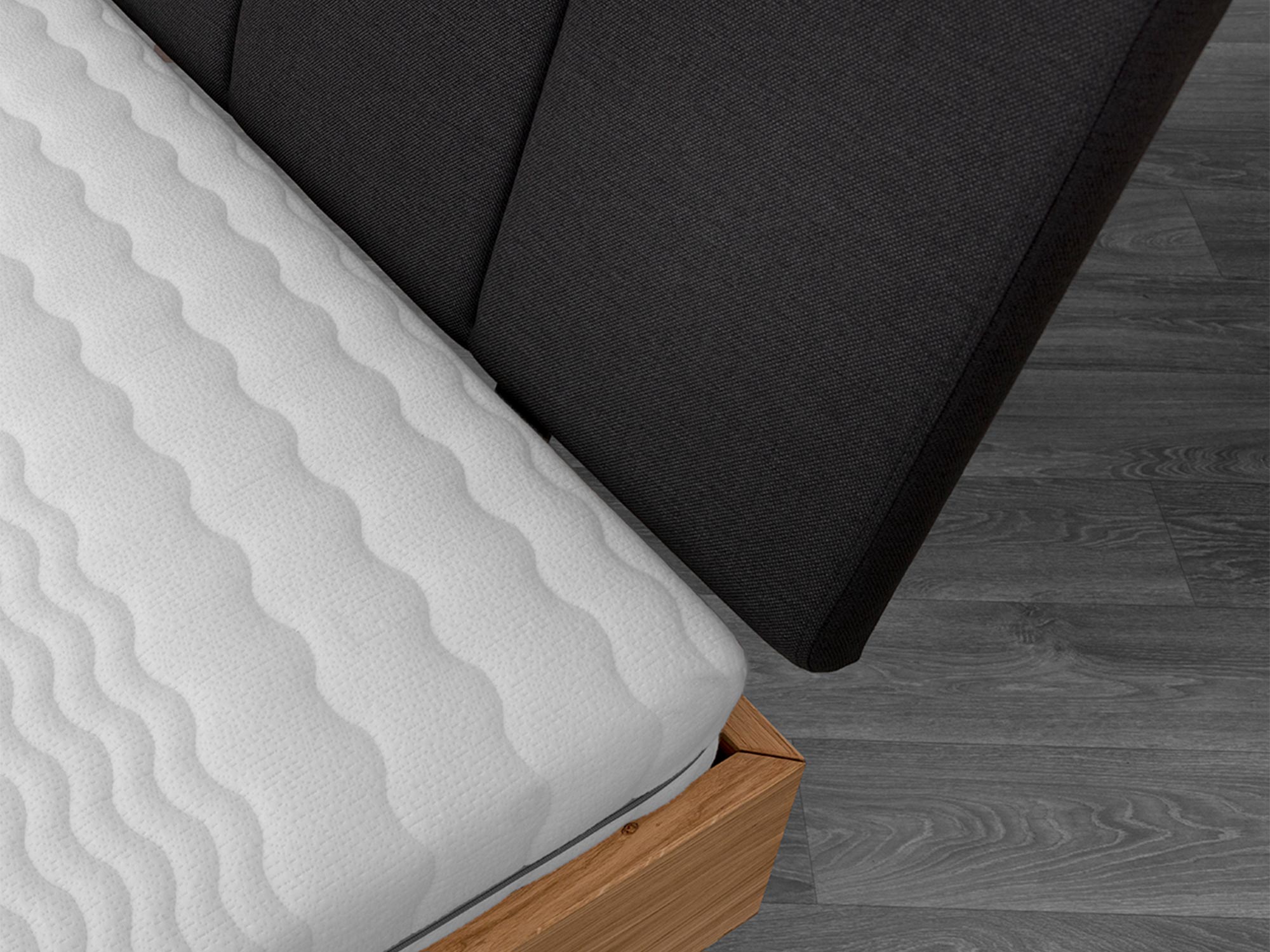 Lity dąb, który pracuje dla Ciebie. Korpus łóżka wykonano z wyselekcjonowanego, litego drewna dębowego. Wykończenie naturalnym olejowoskiem podkreśla rysunek słojów, chroni przed zabrudzeniami i pozwala drewnu „oddychać”, dzięki czemu z czasem nabiera ono pięknej, szlachetnej patyny. Każdy egzemplarz jest unikatowy – to cecha prawdziwego drewna, a nie okleiny.