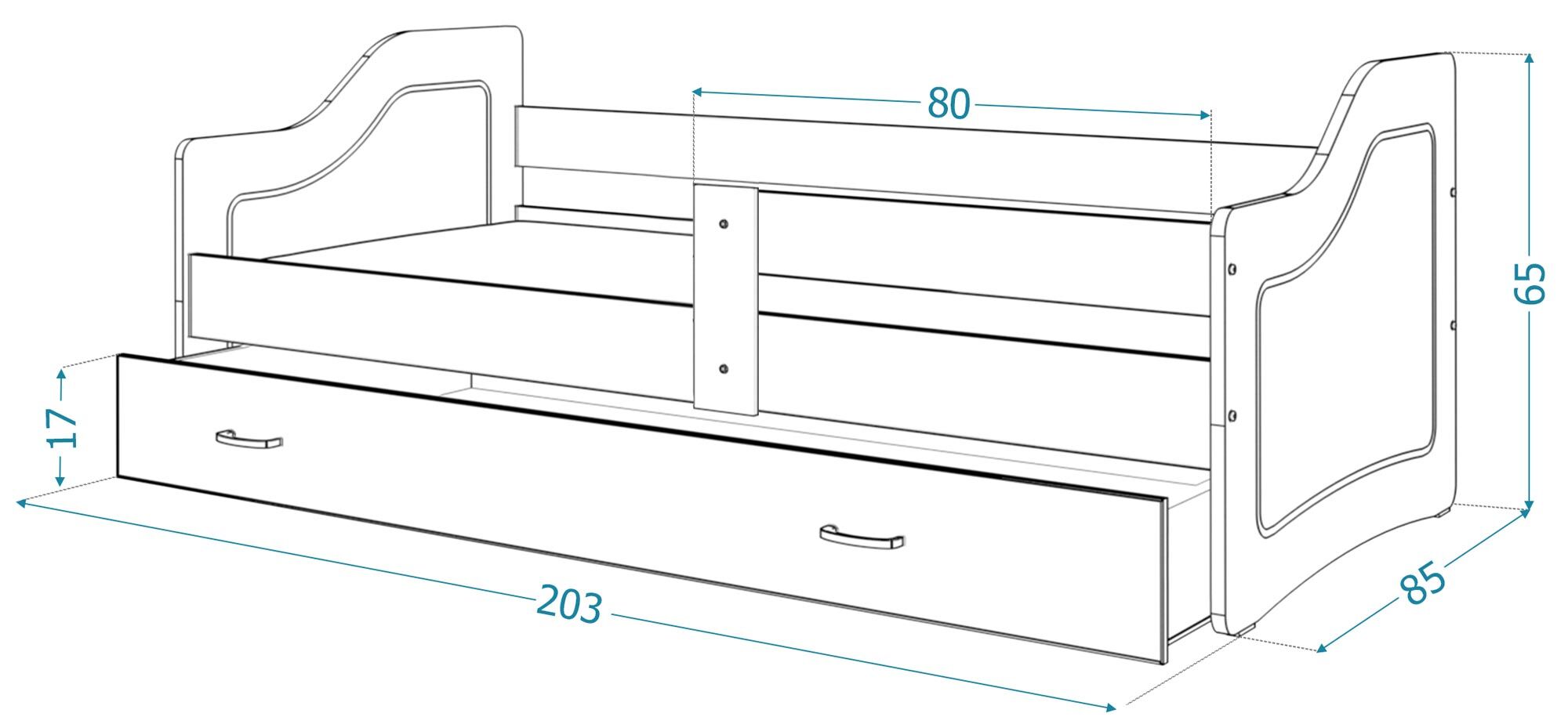 | Powierzchnia spania | 140 x 80 / 160 x 80 / 180 x 80 / 200 x 80 cm |