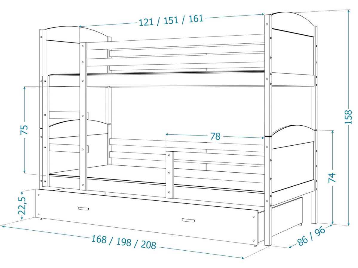 Łóżko dla dzieci piętrowe wymiary CAROL