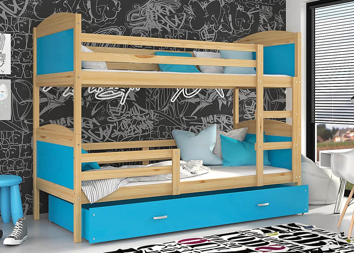 Łóżko dla dzieci piętrowe sosna-błękit CAROL