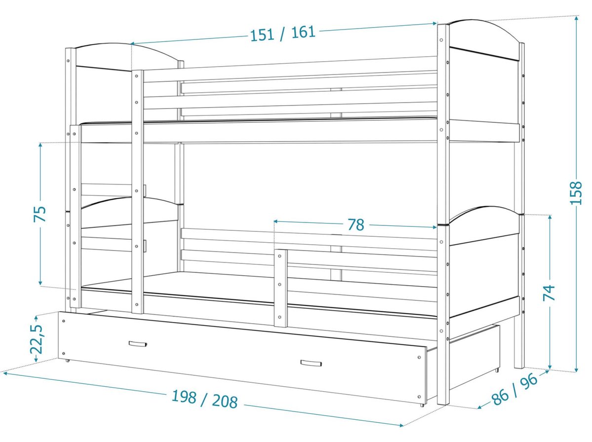 | Powierzchnia spania łóżko wysuwane | 184 x 80 cm |