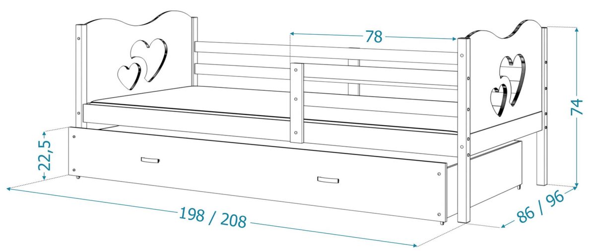 Łóżko dziecięce z materacem CUBI P2