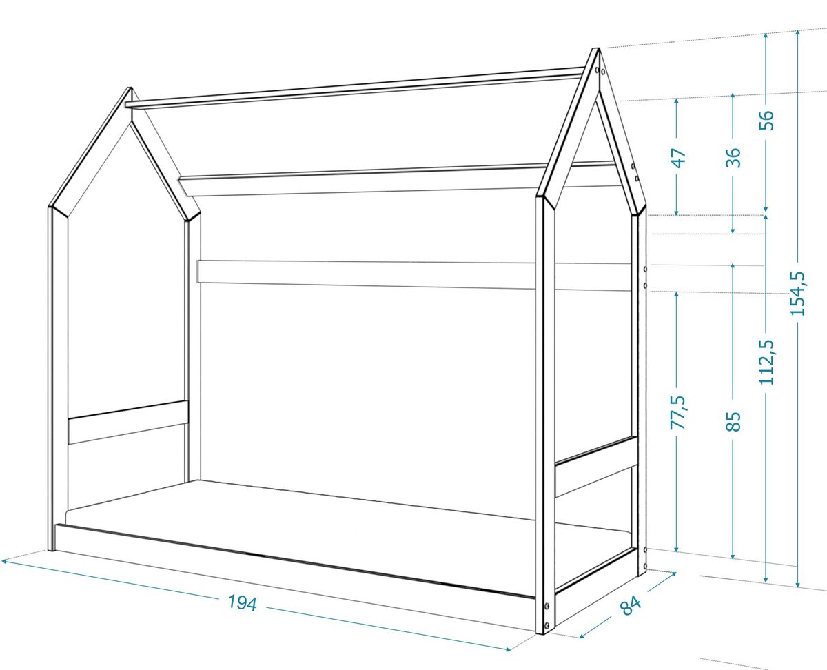 Łóżko domek RICOS to mebel, który charakteryzuje się wygodą, bezpiecznym użytkowaniem i niepowtarzalnym charakterem. Stabilna i trwała konstrukcja gwarantują odporność łóżka a także jego wytrzymałość. Mebel wykonano z wysokiej jakości drewna sosnowego o zaokrąglonych krawędziach i z profilowanymi bokami, które mają na celu zagwarantować bezpieczeństwo śpiącym dzieciom. W celu zwiększenia komfortu korzystania z produktu został on pomalowany bezwonnym wodnym lakierem przeznaczonym do produktów dziecięcych. Łóżko wyposażono w stelaż flex wykonany z sprężynujących listw osadzonych w plastikowych kieszonkach, który zapewnia właściwą amortyzację materaca wraz z ciałem dziecka.. Do wyboru jest też materac z pianki w pokrowcu o grubości 7 cm. Przez wzgląd na różnorodność charakterów i wykończeń w jakich urządzono dziecięce pokoje nasze produkty występują w kilku kolorach do wyboru, są wśród nich biały,szary, sosna i olcha.