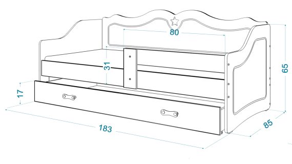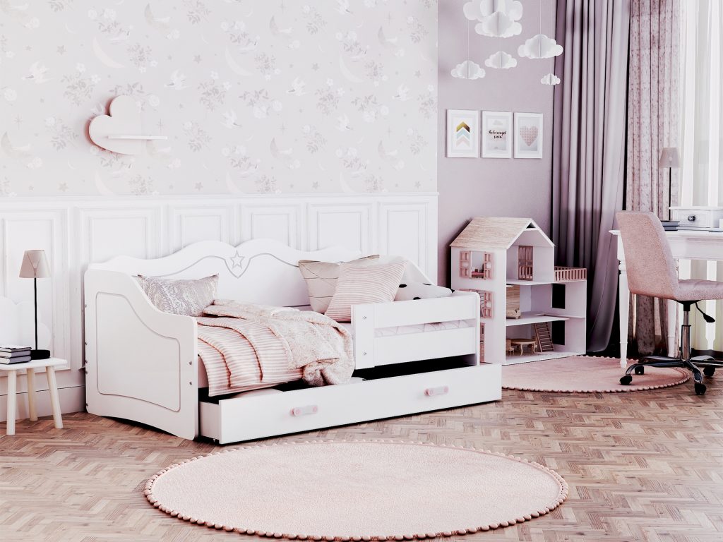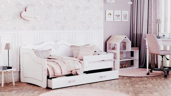 Wyobraź sobie pokój dziecięcy, w którym każdy element jest nie tylko funkcjonalny, ale i estetyczny. Łóżko Emi z szufladą to mebel, który łączy wygodę, bezpieczeństwo i praktyczne rozwiązania. Dzięki uniwersalnej, białej kolorystyce pasuje zarówno do pokoju młodszych dzieci, jak i nastolatków. To nie tylko miejsce do snu, ale również centrum dziecięcego świata – przestrzeń zabawy, spotkań z przyjaciółmi i codziennego odpoczynku.