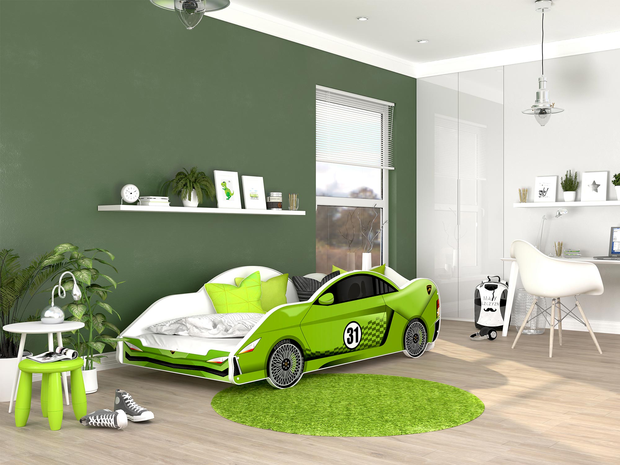 Co najważniejsze przedstawione na zdjęciu po lewej łóżko samochód SPEED 160×80 to gustowny mebel, który fantastycznie będzie wyglądał w każdym dziecięcym pokoju. Z pewnością łóżko to konieczny detal aranżacji absolutnie każdej dziecięcej sypialni, który służy zarówno wypoczynkowi i zabawie. Ponadto produkt jest praktyczny i nowatorski, stanowi spełnienie marzeń dzieci, a przy tym cudownie wygląda, a także przynosi wiele przyjemności i frajdy. Przede wszystkim przez solidne wykonanie mebel zniesie wszystkie dziecięce zabawy oraz bezsprzecznie posłuży przez długi czas. Dodatkowo nasze produkty bez problemu dopasują się do panującej stylizacji dlatego że występują w różnych kolorach, które są trwałe i nie blakną z upływem czasu. Niewątpliwie dwuletnia gwarancja stanowi kolejną zaletę produktu.