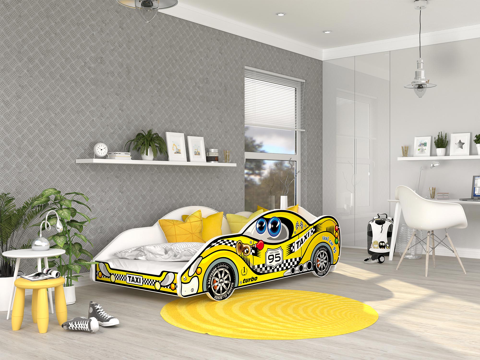 Przede wszystkim łóżko samochód SPEED 160×80 to produkt, który charakteryzuje się komfortem, bezpiecznym użytkowaniem i niepowtarzalnym wyglądem. Niewątpliwie stabilna i trwała konstrukcja gwarantują odporność łóżka a także jego trwałość. Z pewnością mebel zrobiono z najwyższej klasy płyty meblowej z zaokrąglonymi krawędziami i profilowanymi bokami, które mają za zadanie zapewnić bezpieczeństwo śpiącym dzieciom. Ponadto w celu zwiększenia bezpieczeństwa korzystania z produktu został on pomalowany bezwonnym wodnym lakierem przeznaczonym do produktów dziecięcych. Dodatkowo w opcji jest też piankowy materac w pokrowcu o grubości 7 cm. Przede wszystkim ze względu na rozmaitość aranżacji i stylizacji w jakich zorganizowano dziecięce sypialnie nasze produkty są dostępne w kilku pięknych i ciekawych wzorach do wyboru. Do łóżka dołączono zestaw przeznaczony do montażu, który jest szybki i nieskomplikowany, jak również instrukcja. Niewątpliwie łóżko samochód Cars 160×80 wyposażono w stelaż flex wykonany z sprężynujących listw osadzonych w plastikowych kieszonkach, który zapewnia właściwą amortyzację materaca wraz z ciałem dziecka.