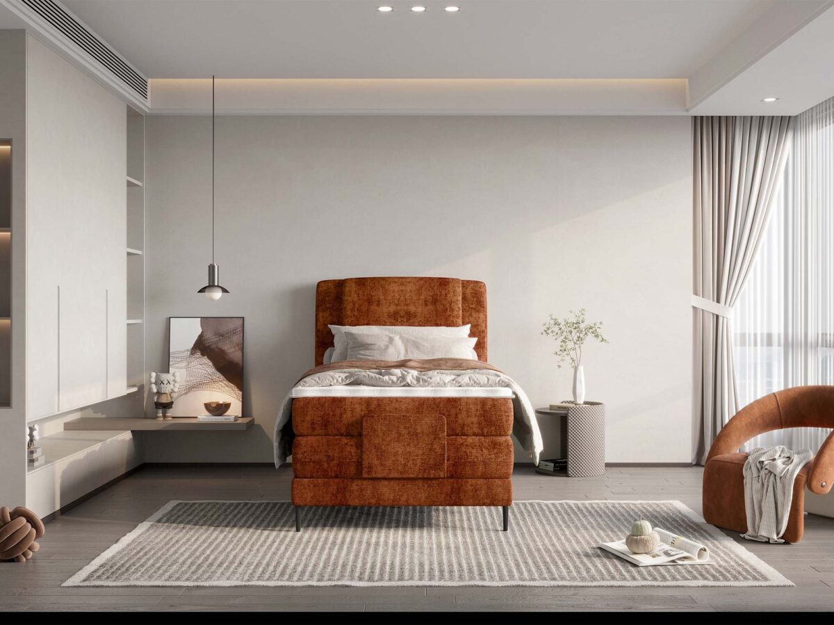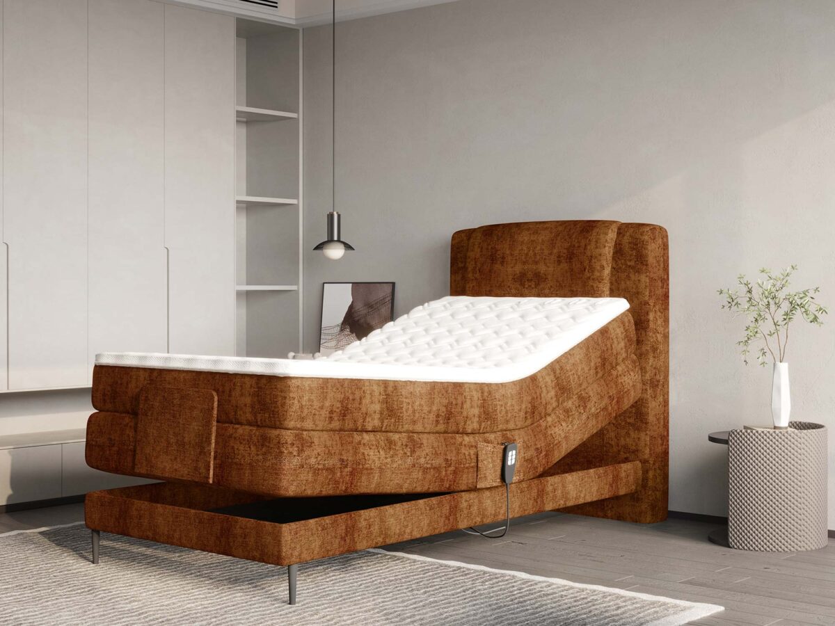 Łóżko kontynentalne ceglane z regulacją elektryczną w sypialni