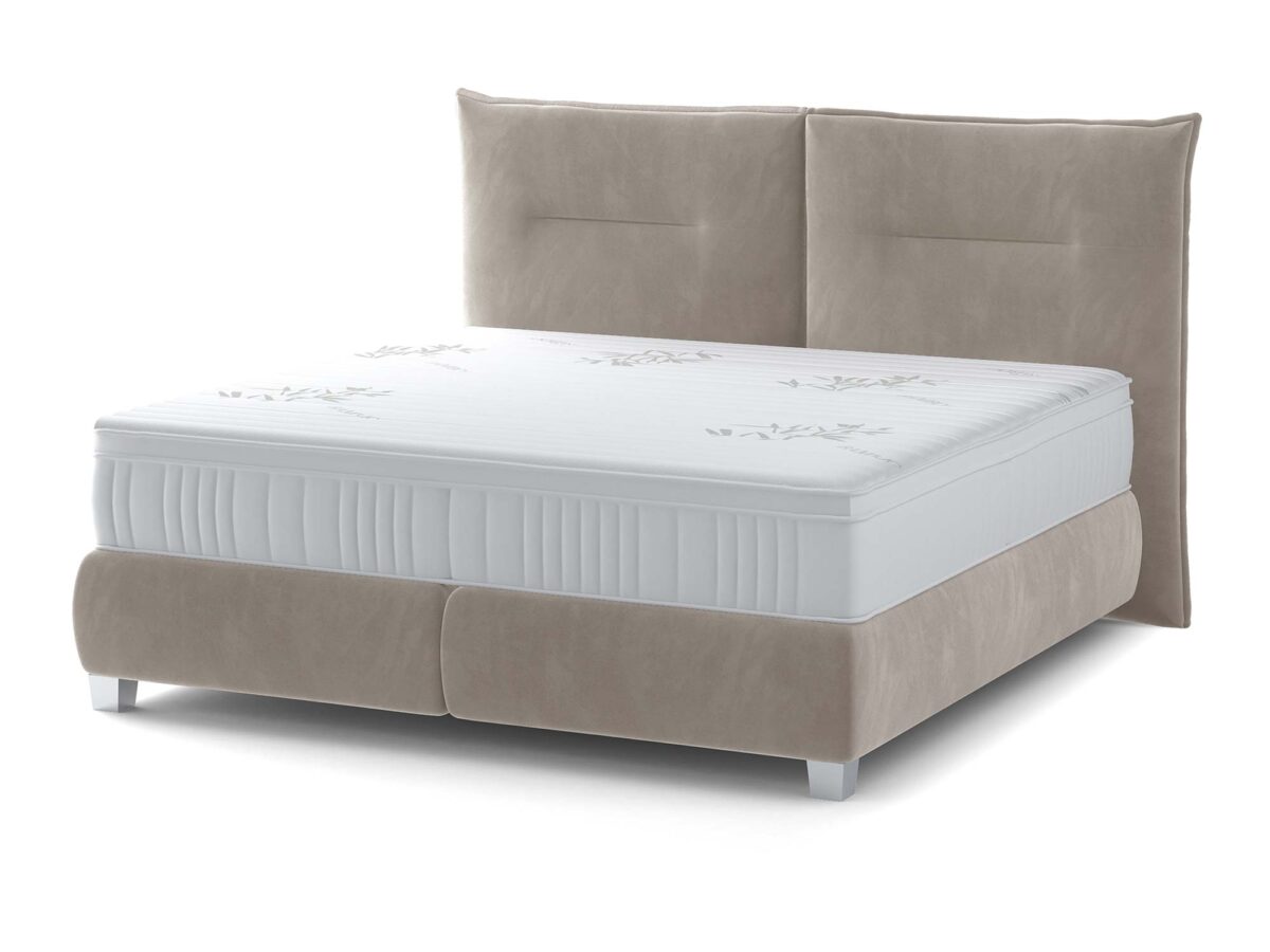 Łóżko kontynentalne beżowe z podwójnym zagłówkiem widok frontalny