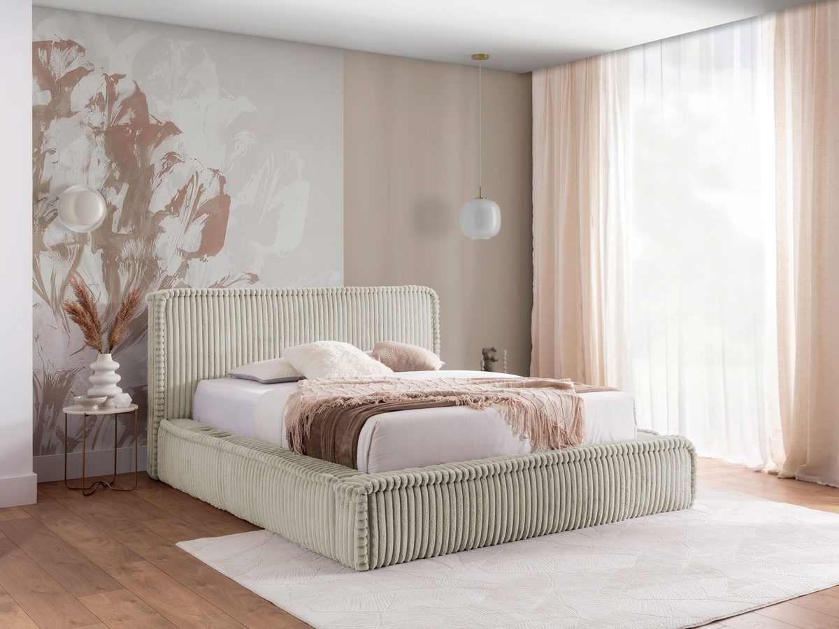 Luksusowe Łóżko z Prążkowaną Tapicerką HOODIE – Nowoczesny Komfort i Styl