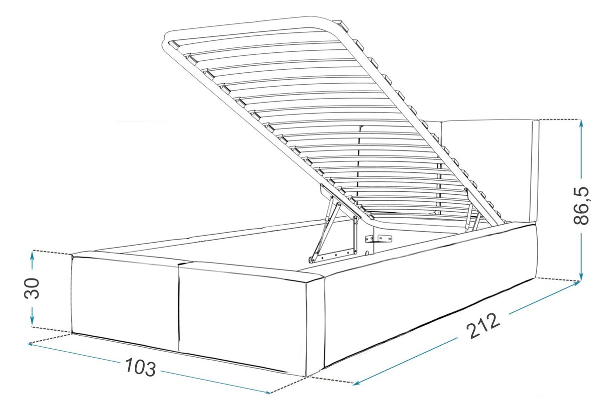 Wyposażony w ramki podpierające materac, posiada mechanizm podnoszenia w formie dwóch siłowników gazowych jak również brzozowe listwy sprężynujące typu flex osadzone w plastikowych kieszonkach. Rama stelaża wykonana jest ze stali.