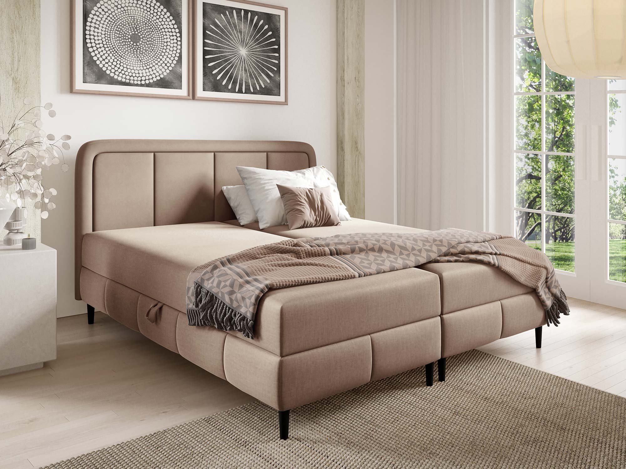 Model Apis został zaprojektowany tak, aby spełniał potrzeby zarówno osób, które pragną komfortu snu, jak i tych, które zwracają uwagę na detale wykończenia. Automat sprężynowy sprawia, że dostęp do pojemników na pościel jest niezwykle prosty, a drewniane nóżki w odcieniu wenge nadają całości wyjątkowego, eleganckiego charakteru.