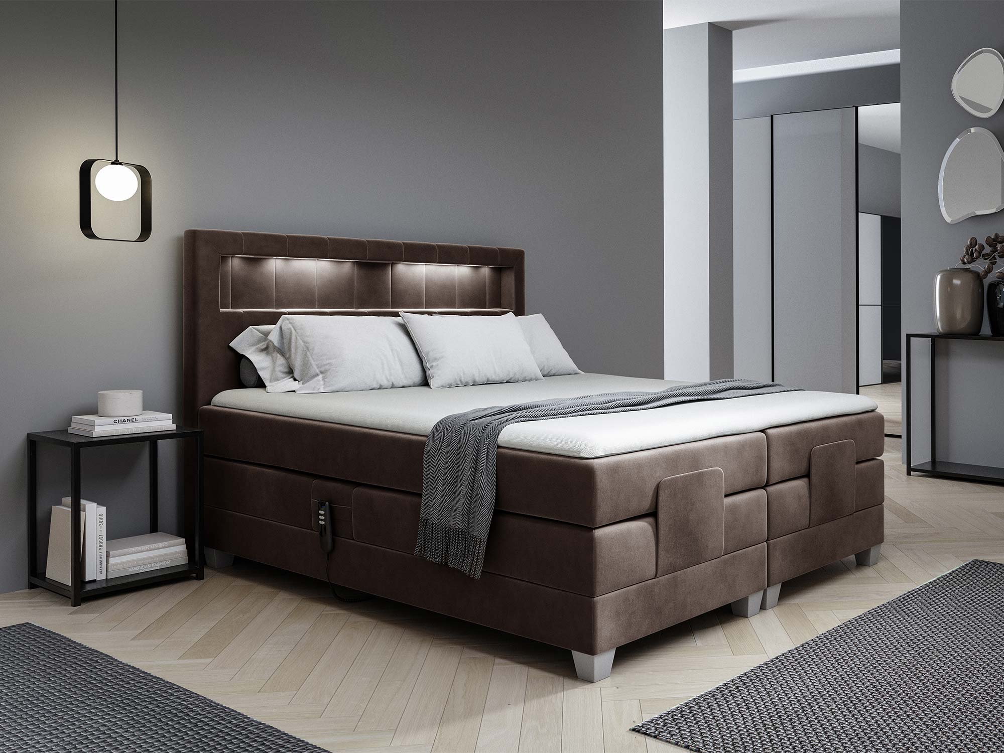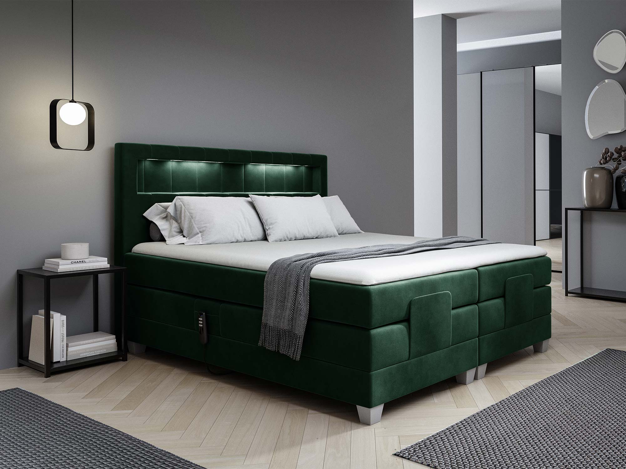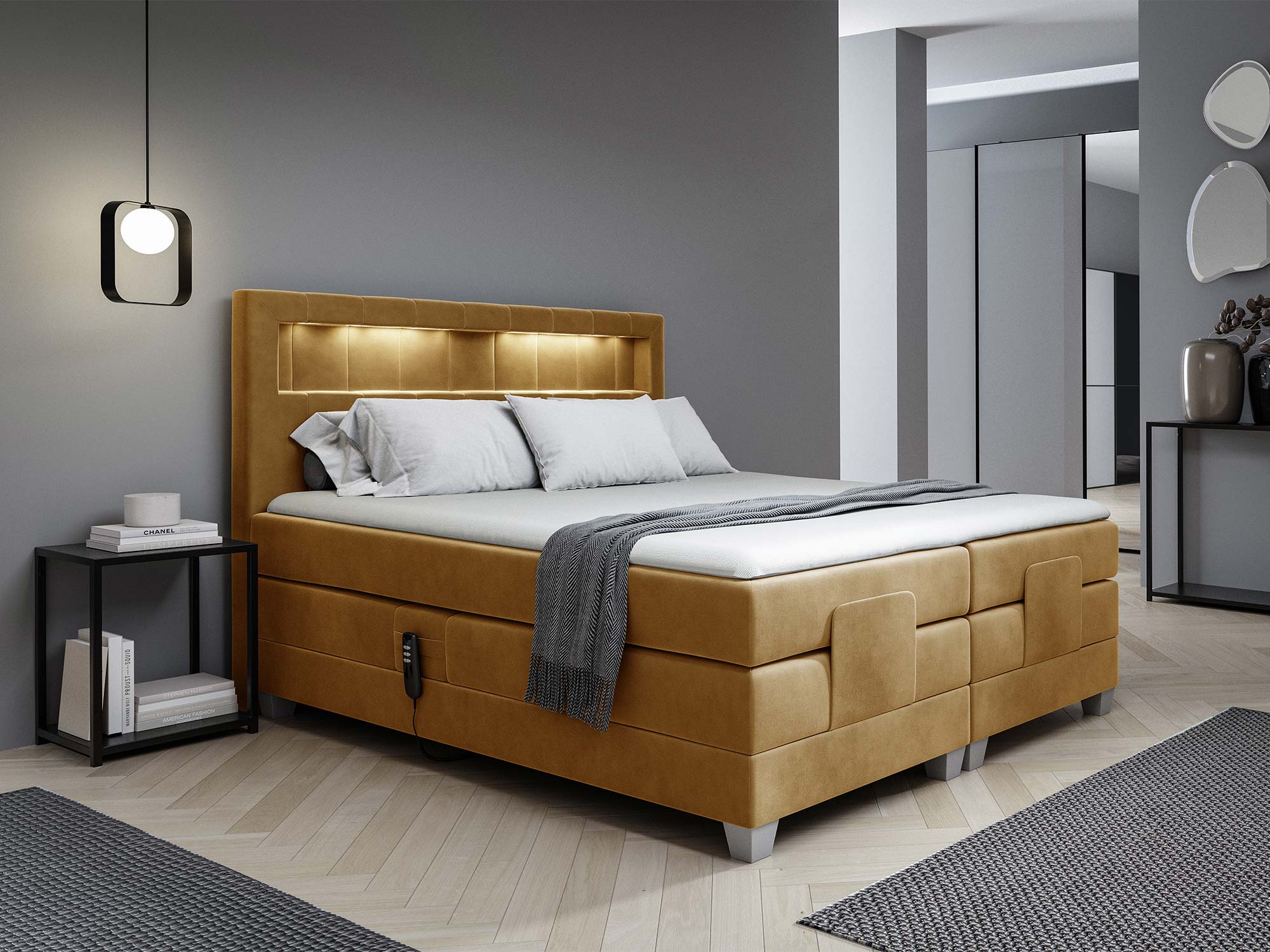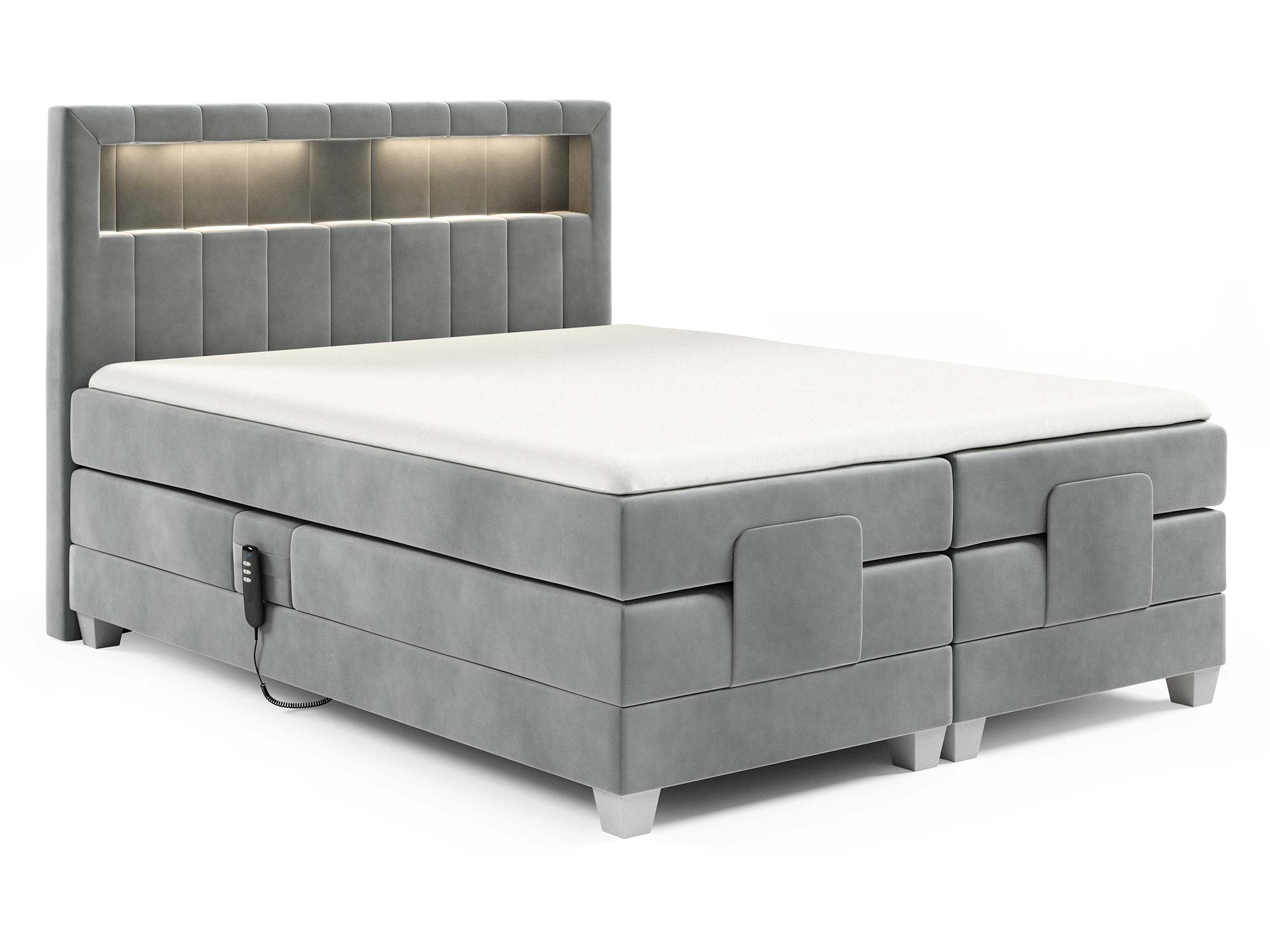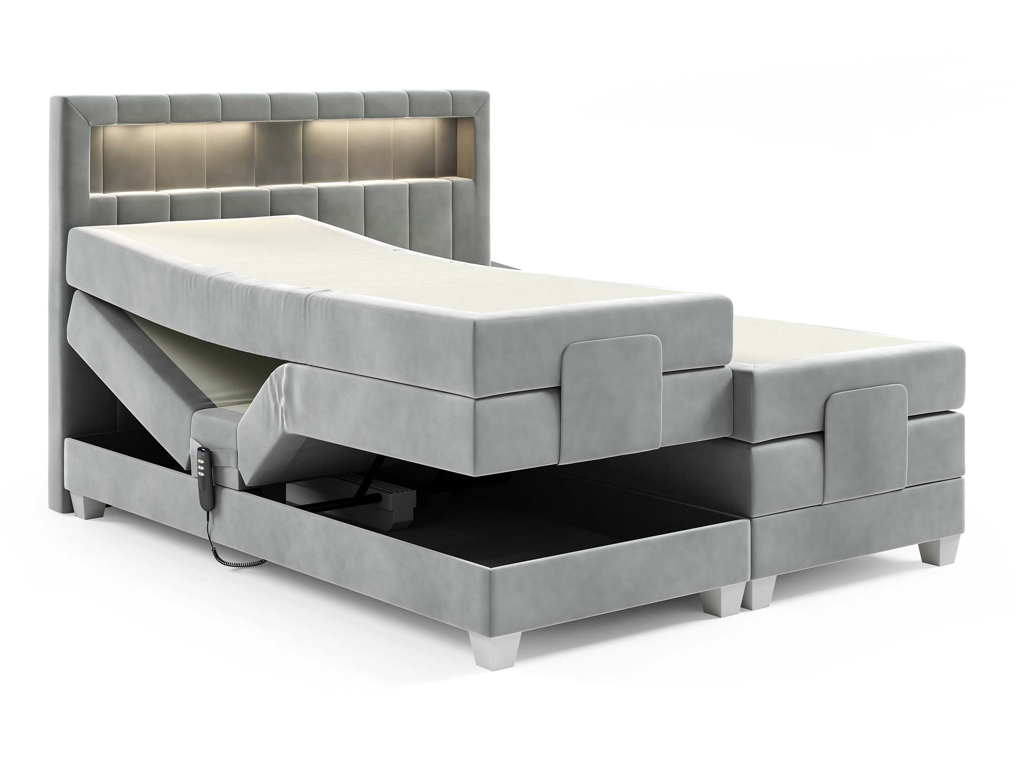 Model ten został wyposażony w elektryczny mechanizm regulacji, który pozwala na podnoszenie tylko głowy, tylko nóg lub obu partii ciała jednocześnie. To rozwiązanie, które podnosi komfort wypoczynku na zupełnie nowy poziom – idealne do odpoczynku po ciężkim dniu, a także dla osób ceniących indywidualne ustawienia podczas snu.