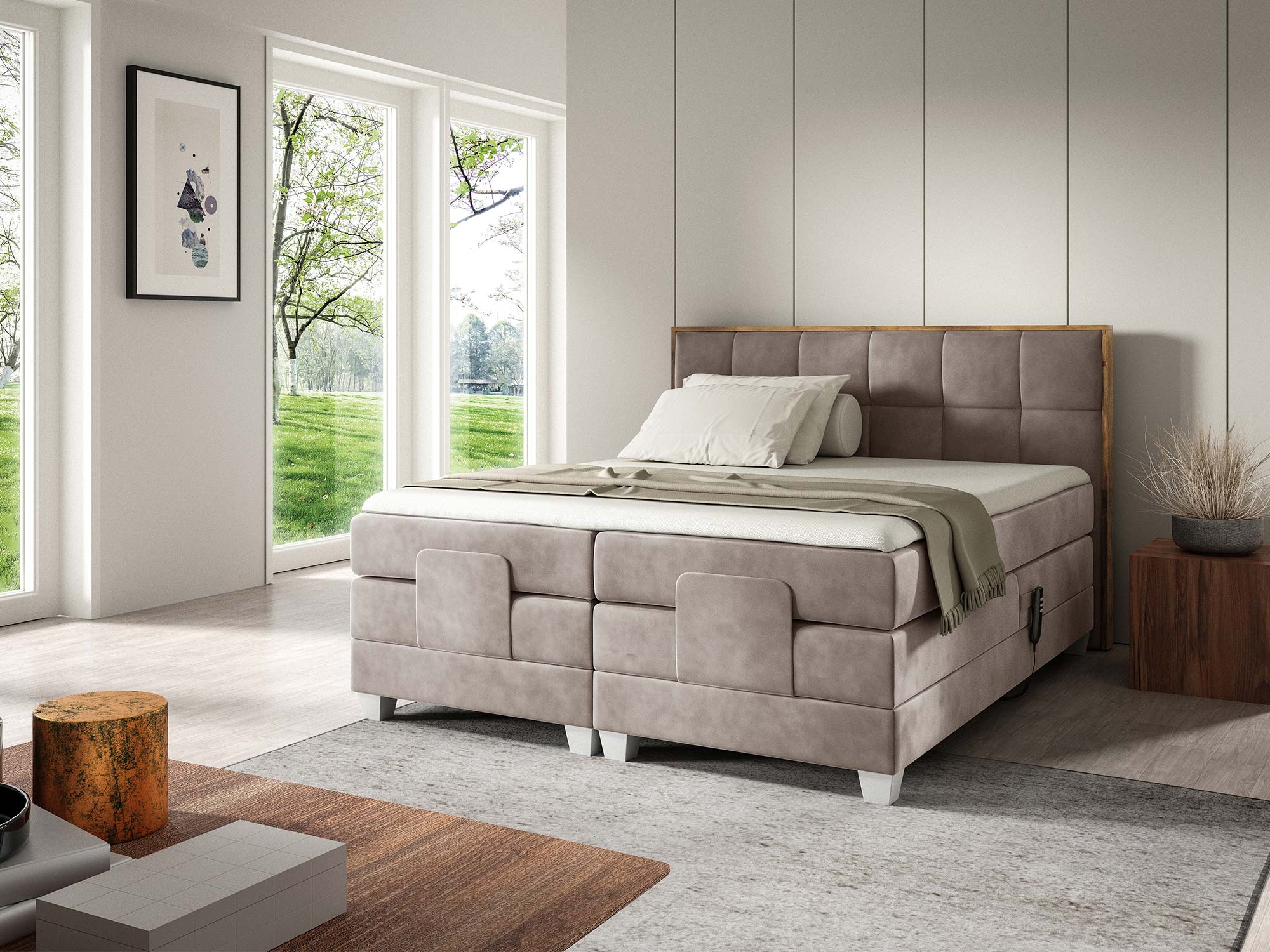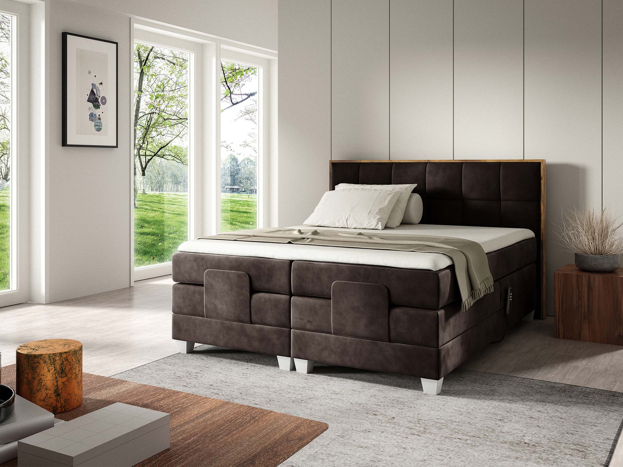Łóżko Venita to idealne rozwiązanie dla osób, które cenią luksus, wygodę i nowoczesne technologie. Dzięki elektrycznej regulacji możesz dopasować je do swoich potrzeb i cieszyć się komfortem każdego dnia. Połączenie stylowych przeszyć z elementem w kolorze dąb sonoma sprawia, że mebel staje się wyjątkową ozdobą sypialni.