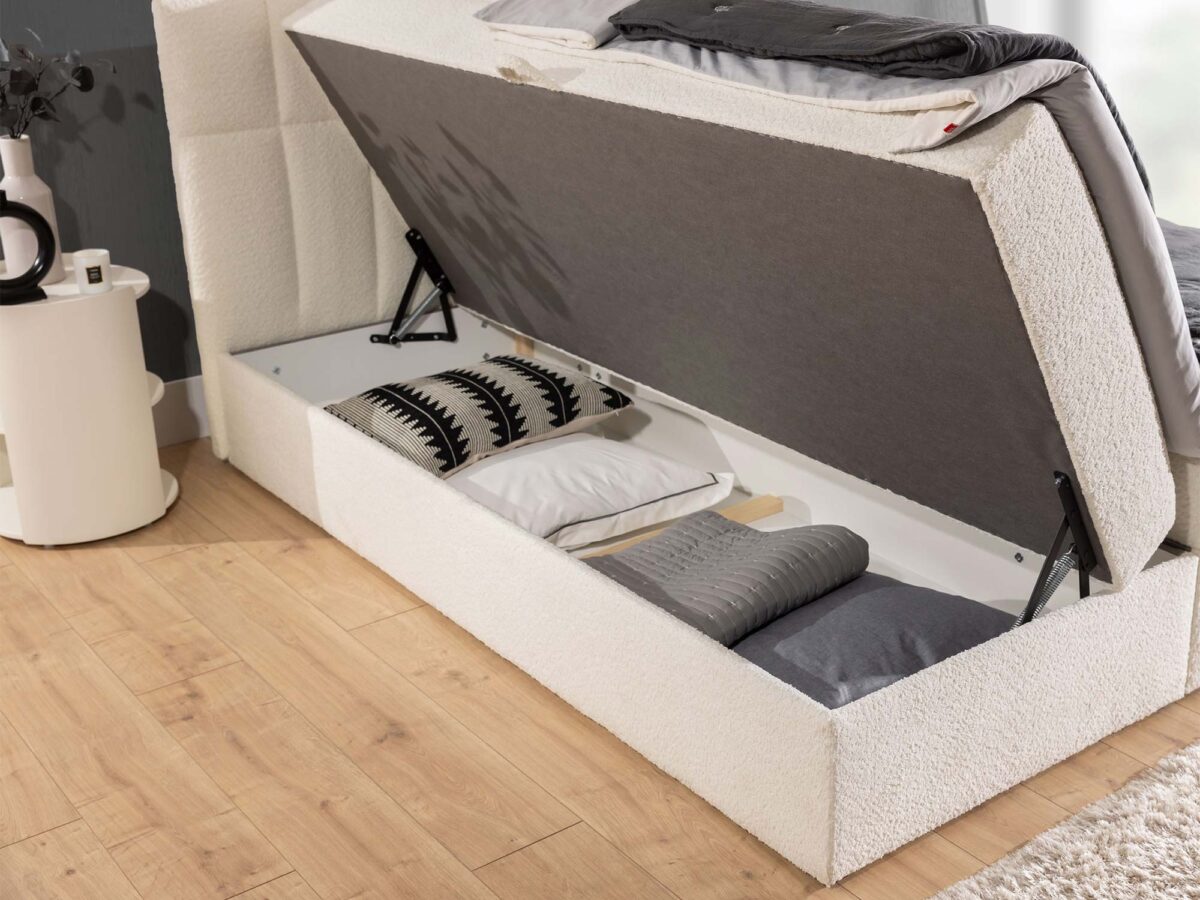 Wbudowany automat sprężynowy sprawia, że otwieranie pojemników jest lekkie i intuicyjne. Wystarczy delikatny ruch, aby uzyskać dostęp do obszernej przestrzeni ukrytej pod materacem. To rozwiązanie szczególnie docenią osoby, które cenią sobie komfort użytkowania i sprytne mechanizmy.