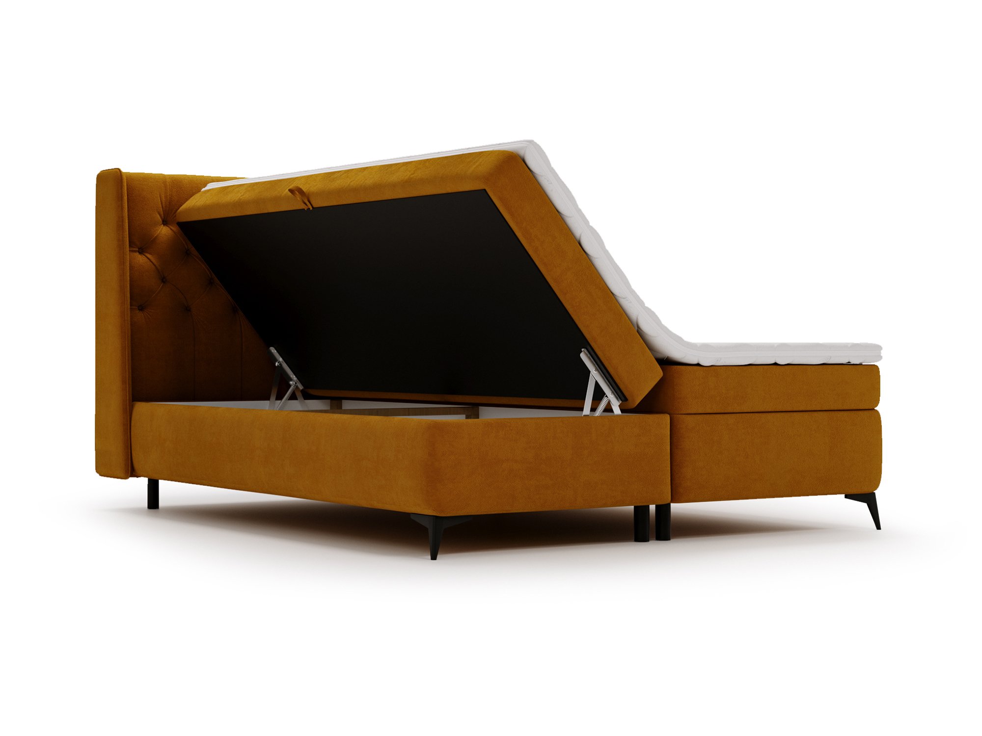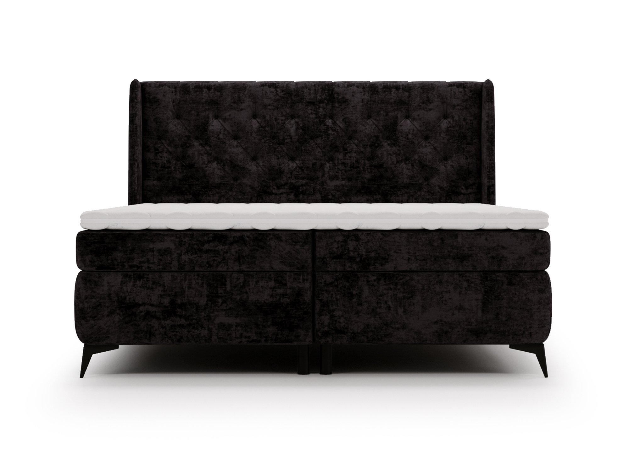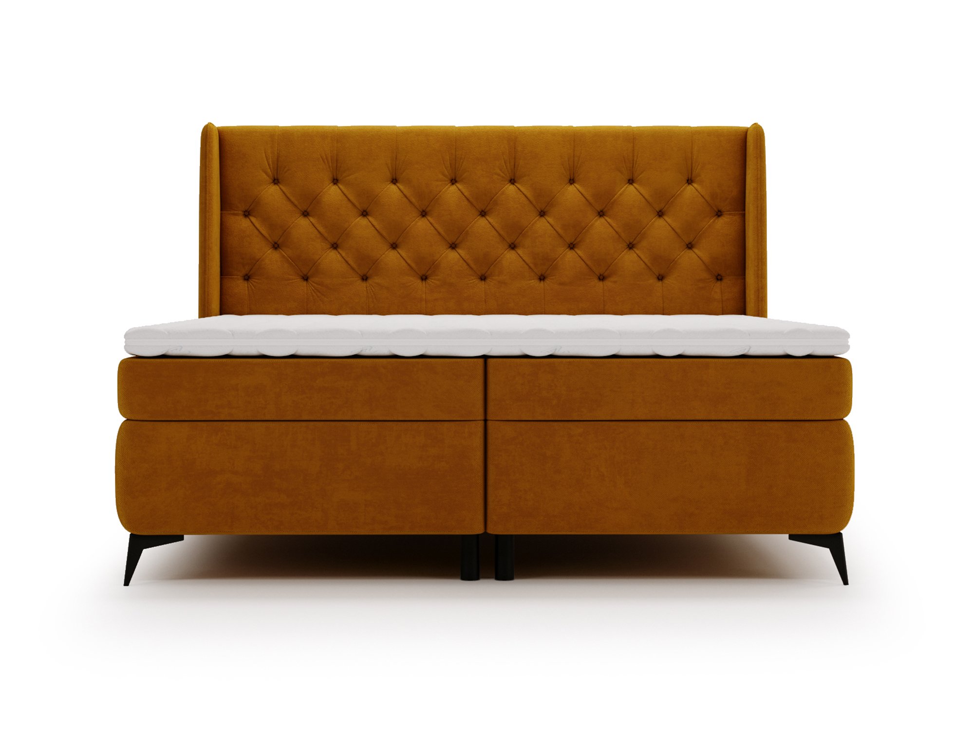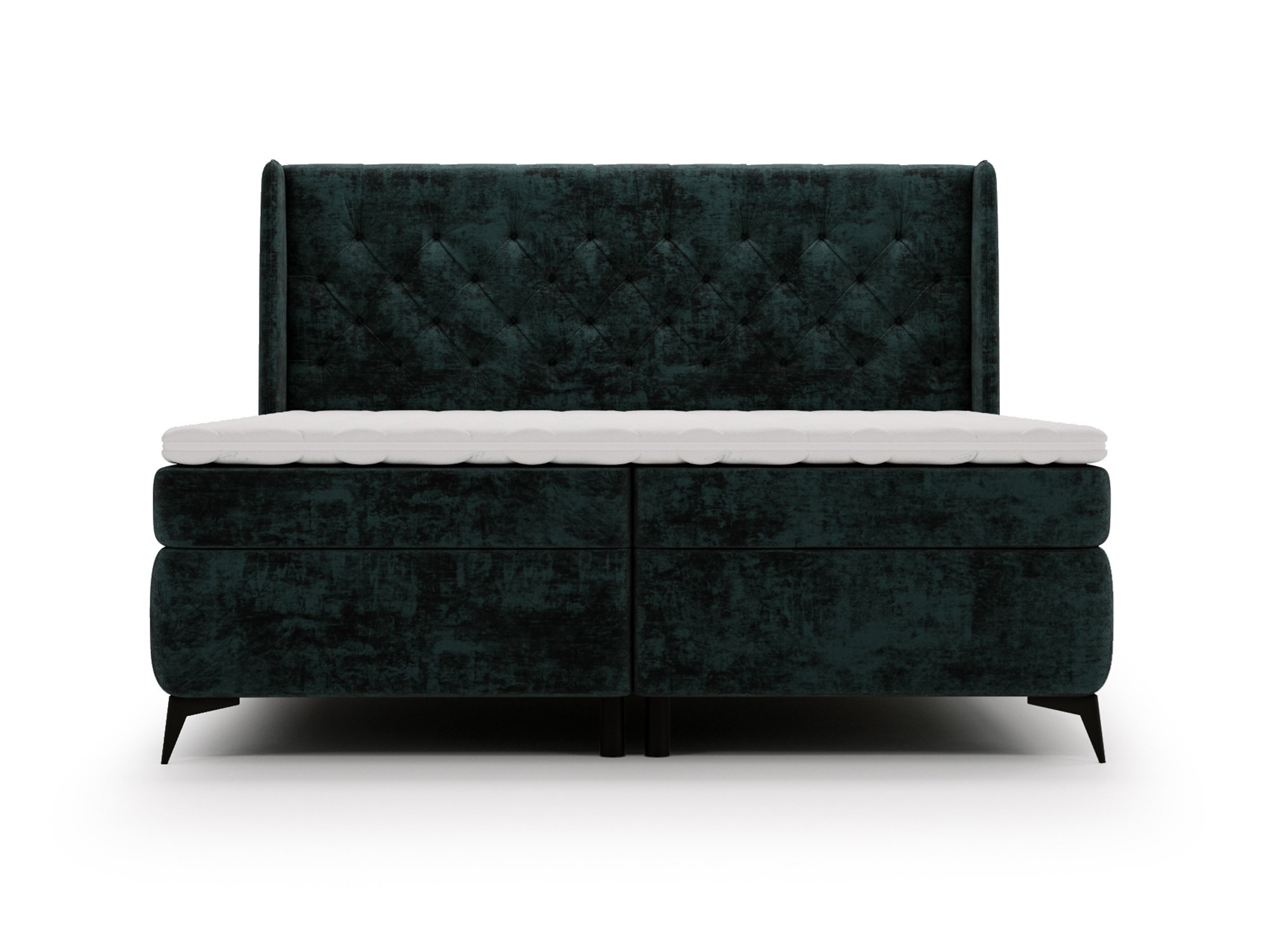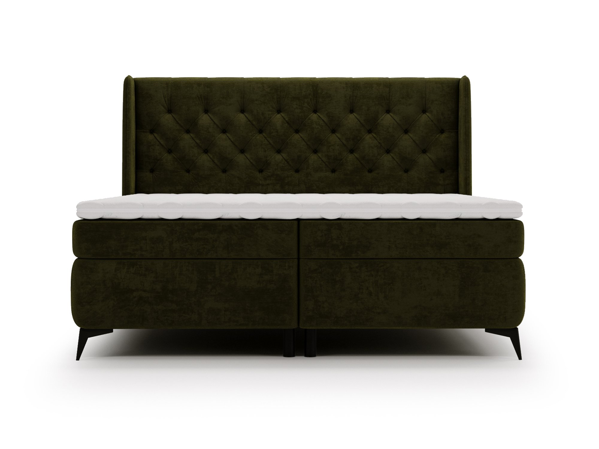 - Komfort warstwowy – konstrukcja kontynentalna (baza + materac bonellowy + topper) sprzyja wygodnemu, stabilnemu podparciu.