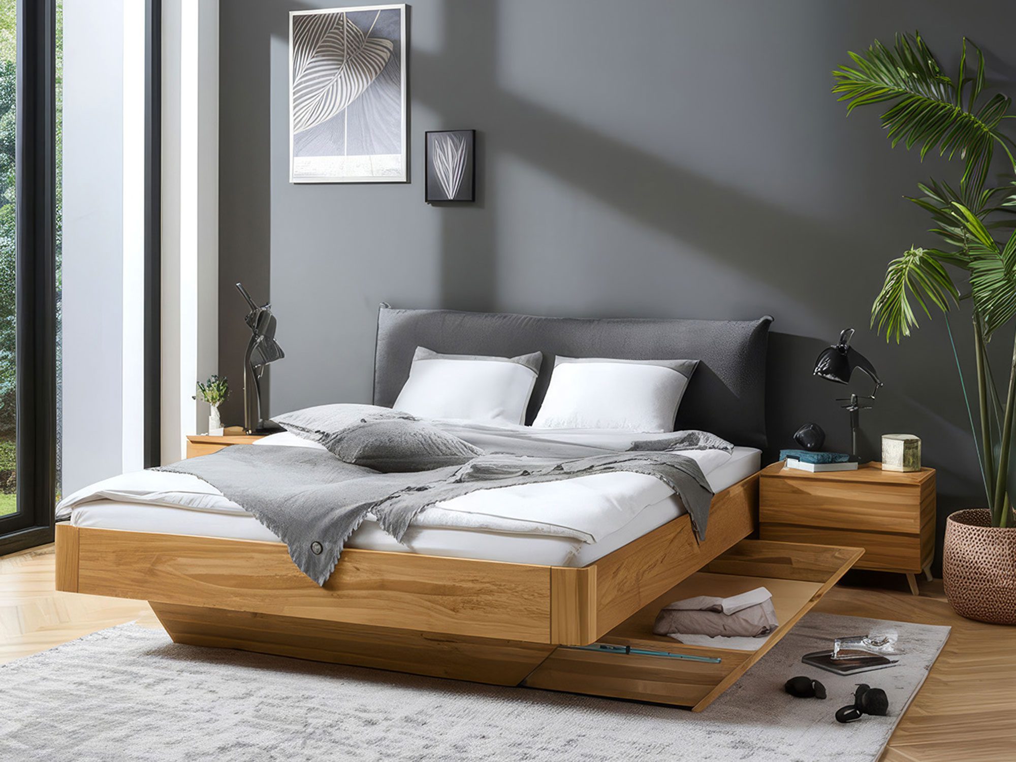 Elona B to łóżko, które łączy estetykę i funkcję: piękny dąb lity, tapicerowany zagłówek dla komfortu oraz szuflady dla porządku. Stabilna konstrukcja, staranne wykończenie i ponadczasowy design sprawiają, że to inwestycja w lepszy sen i bardziej uporządkowaną sypialnię. Wybierz rozmiar, dobierz stelaż i materac — i ciesz się codziennym komfortem.