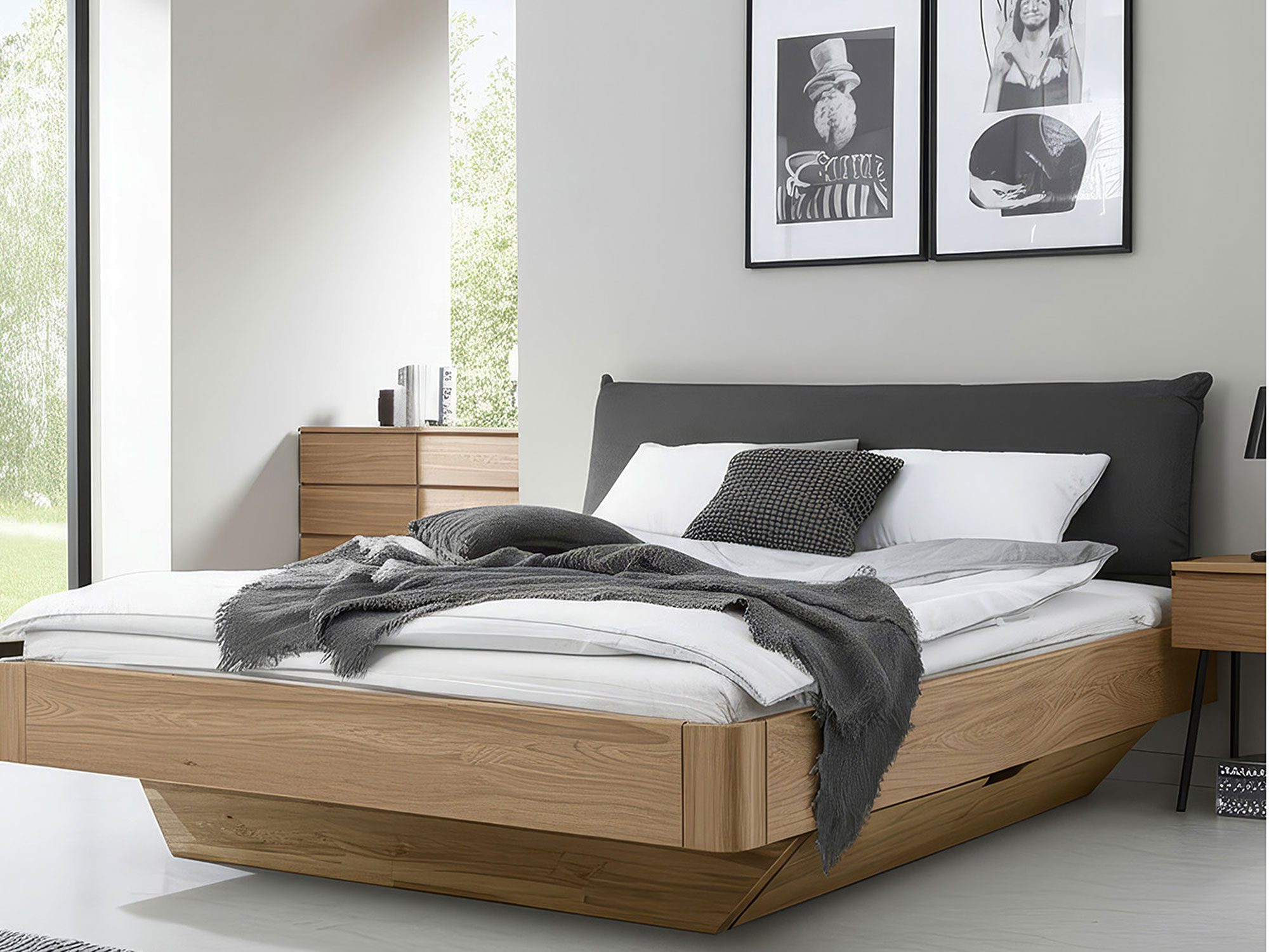 „Floating bed”: lekkość bez kompromisów. Cofnięte nogi i podcięty cokół sprawiają, że bryła wydaje się unosić nad podłogą. To nie tylko efekt „wow” — takie rozwiązanie optycznie porządkuje przestrzeń i dodaje jej nowoczesnego sznytu, nie rezygnując ze stabilności.