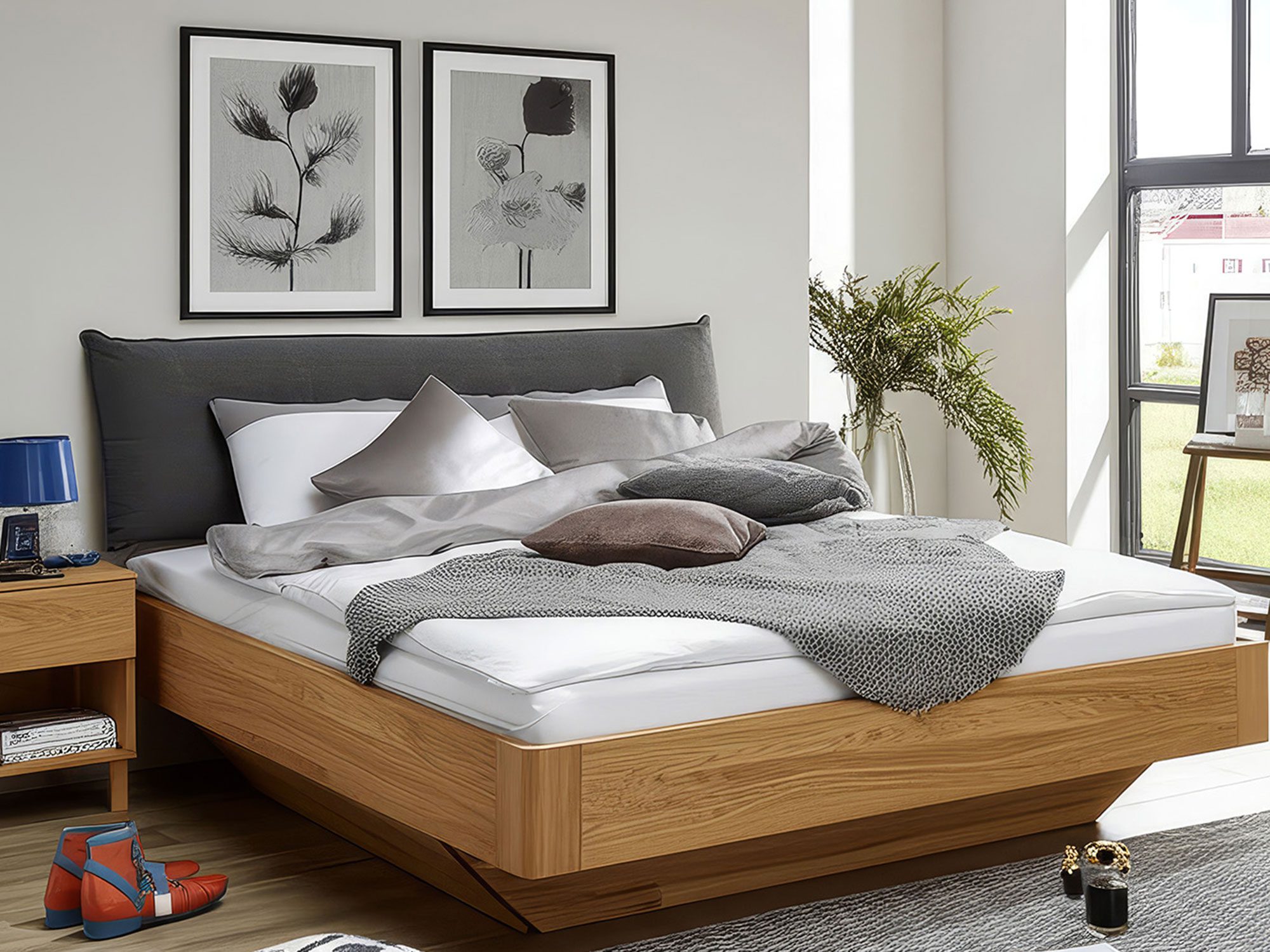 Estetyka, która pasuje. Elona B harmonijnie wpisuje się w sypialnie nowoczesne, skandynawskie, japandi czy loftowe. Dąb tworzy ciepłą bazę, a zagłówek — miękki akcent, który z łatwością zgrasz z tekstyliami i oświetleniem.
