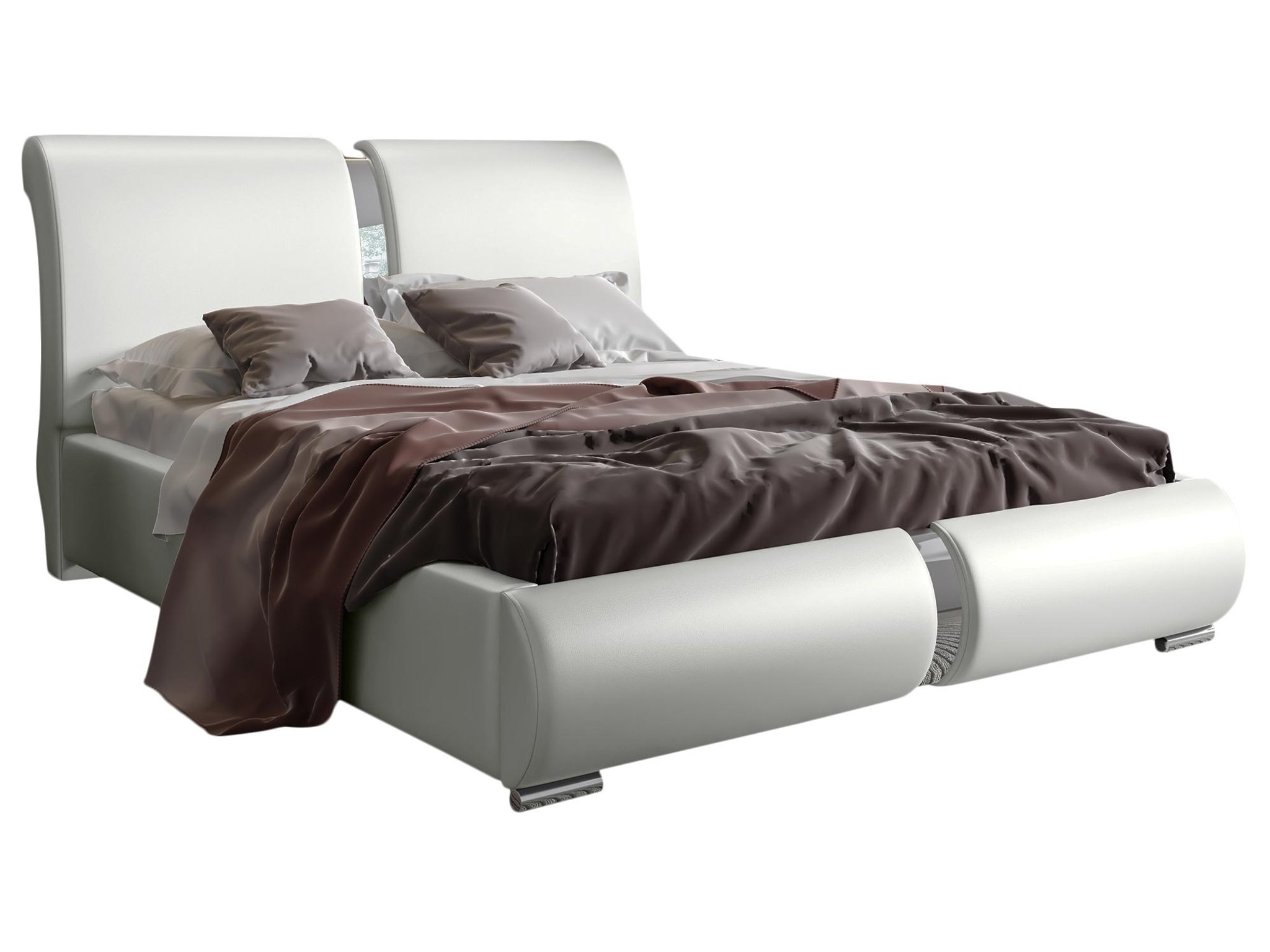 - Nowoczesny design z profilowanym zagłówkiem i ozdobną listwą niklową