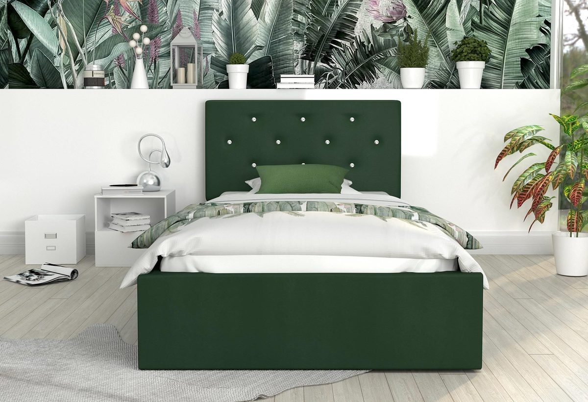 Łóżko tapicerowane butelkowa zieleń aranżacja 120x200 FRESCO