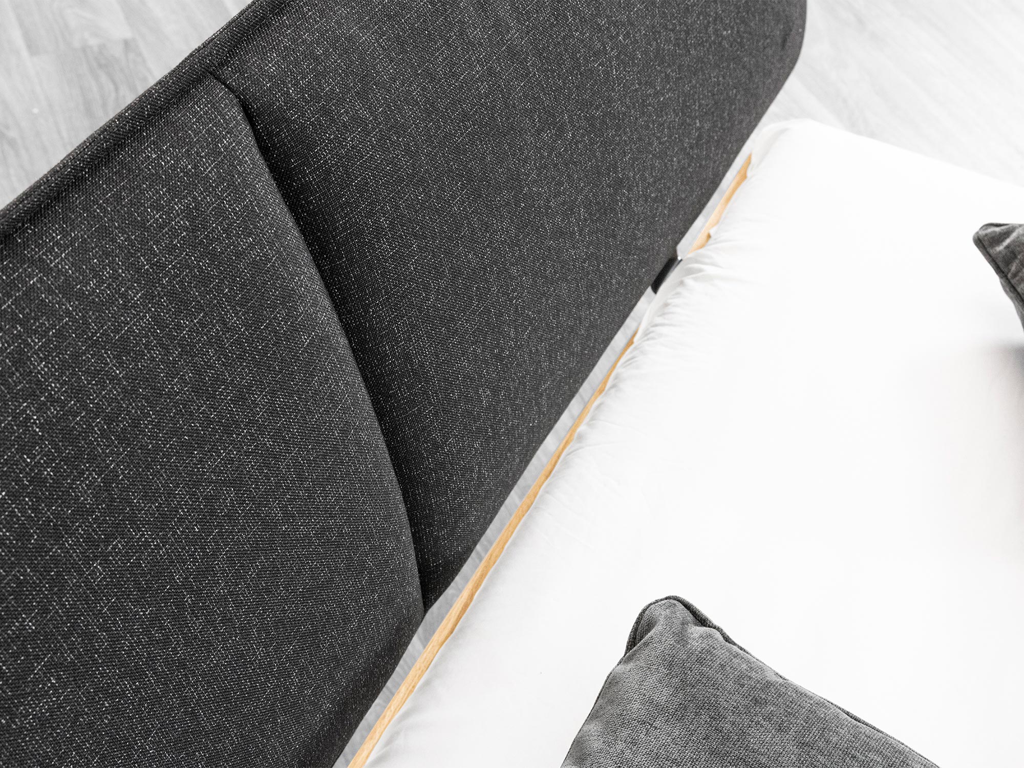 Konstrukcja pod komfort. Przemyślany układ punktów podparcia i precyzyjne okucia zapewniają sztywność i cichą pracę łóżka. Głębokość osadzenia materaca i ranty ramy zaprojektowano tak, aby materac nie przesuwał się podczas snu.