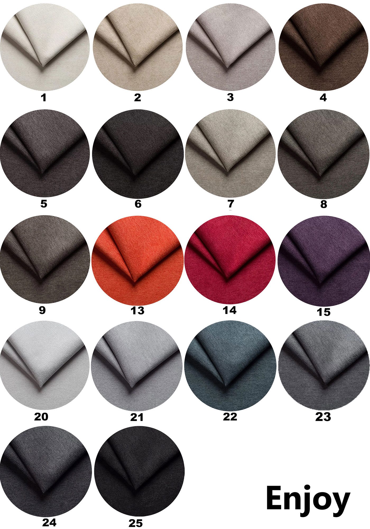 - Zagłówek: tapicerowany (tkanina Enjoy lub Denver, kolor wg próbnika)