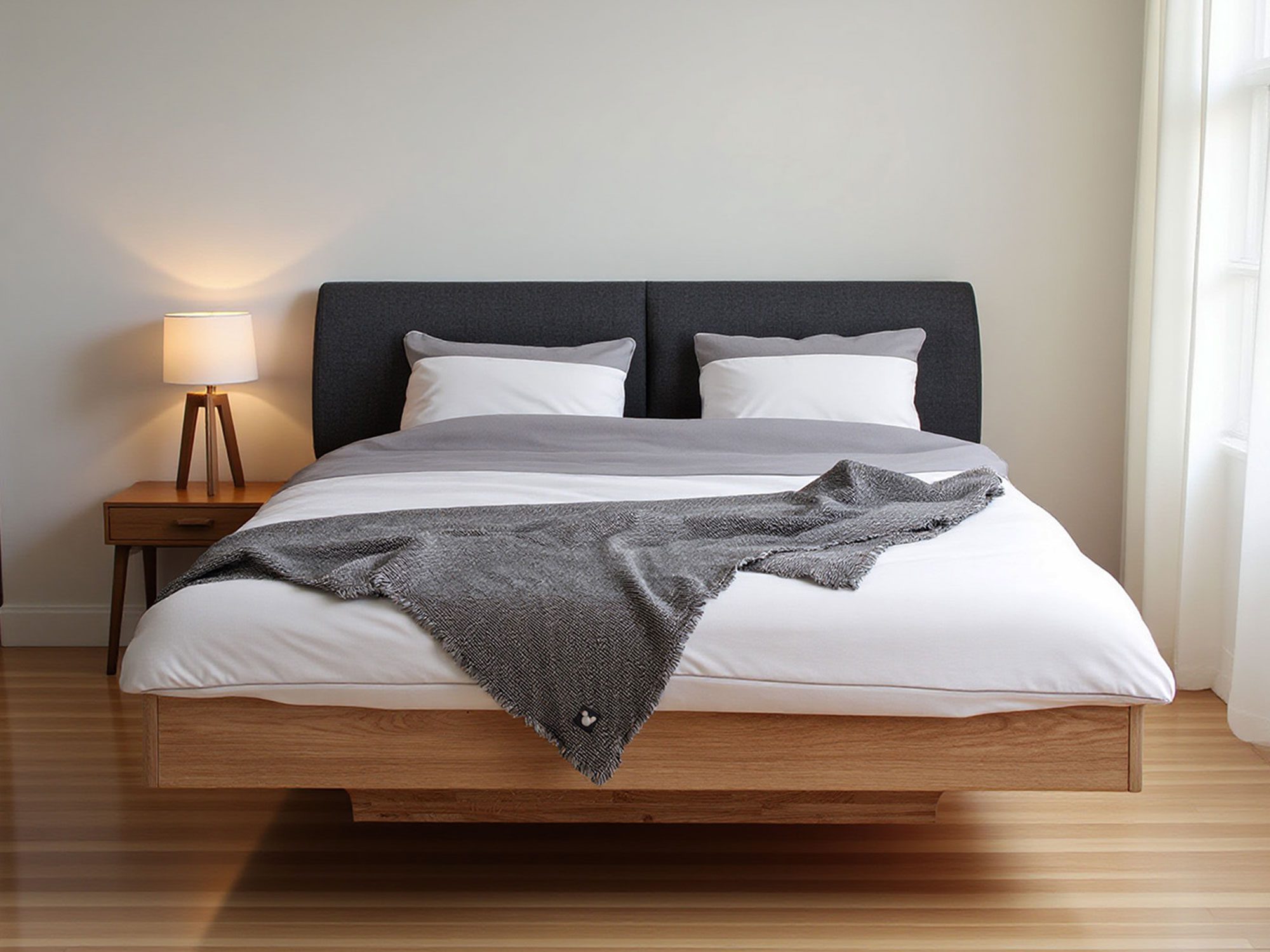 Efekt „lewitacji”. Nogi przesunięte do wewnątrz sprawiają, że łóżko wygląda na zawieszone nad podłogą. Ten zabieg optycznie powiększa przestrzeń, rozjaśnia wnętrze i nadaje bryle nowoczesnego charakteru, nie tracąc nic z jej stabilności.