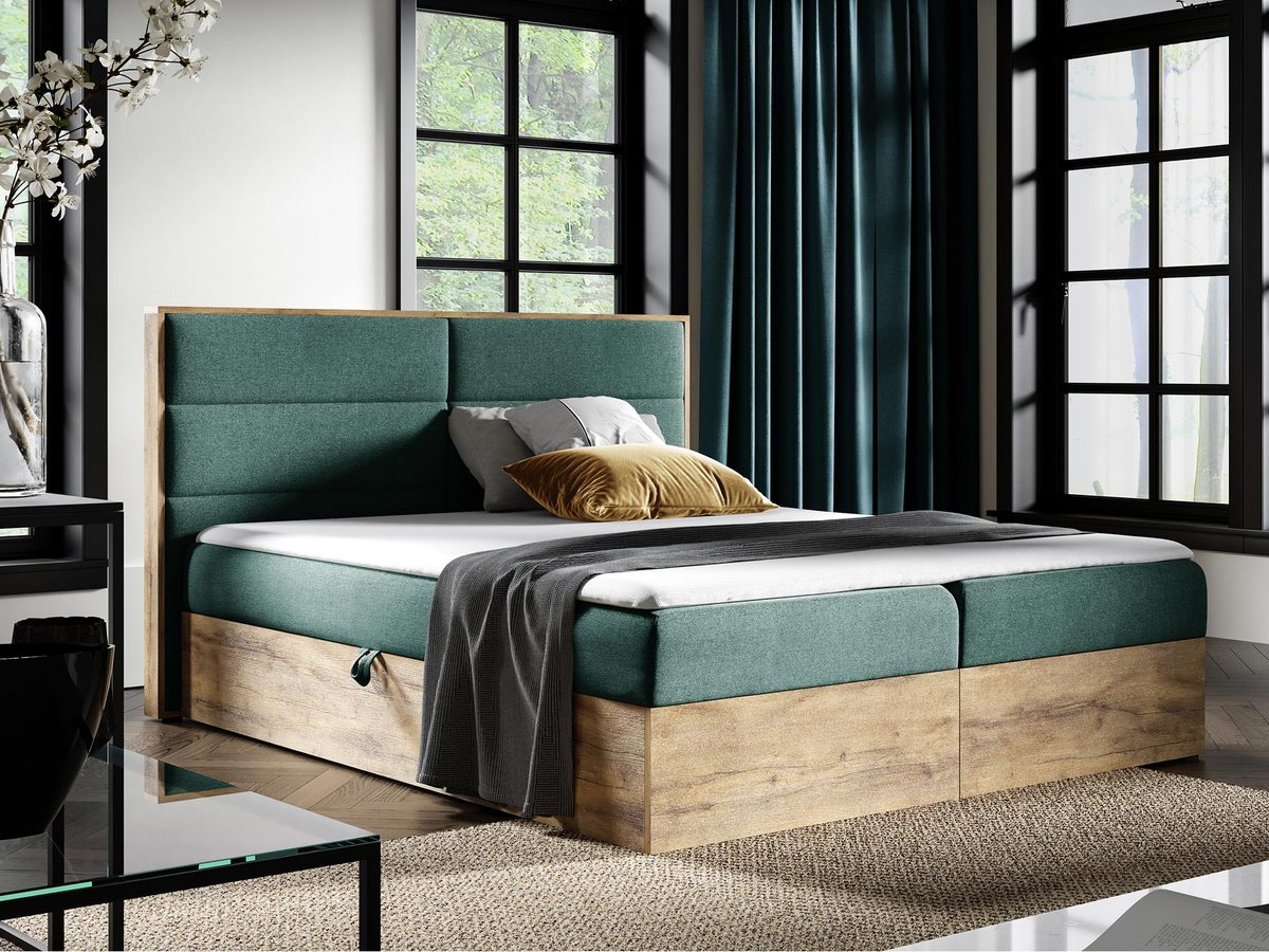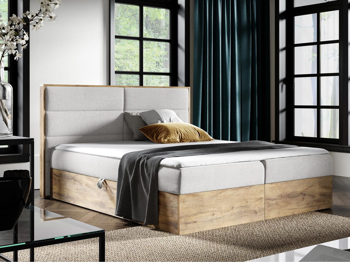 Wygodne Łóżko do Sypialni w Stylu Industrialnym CEDRIC 1 to idealne połączenie nowoczesnego designu i maksymalnej funkcjonalności. Stworzone z myślą o miłośnikach stylu industrialnego, łóżko to wyróżnia się eleganckim wykończeniem w kolorze dąb wotan oraz prostą, minimalistyczną konstrukcją. Wysoka jakość materiałów, w tym materac bonell i topper z pianki wysokoelastycznej T-25, zapewniają doskonały komfort snu. Dodatkowo, dwa pojemniki na pościel sprawiają, że łóżko jest nie tylko stylowe, ale również praktyczne.